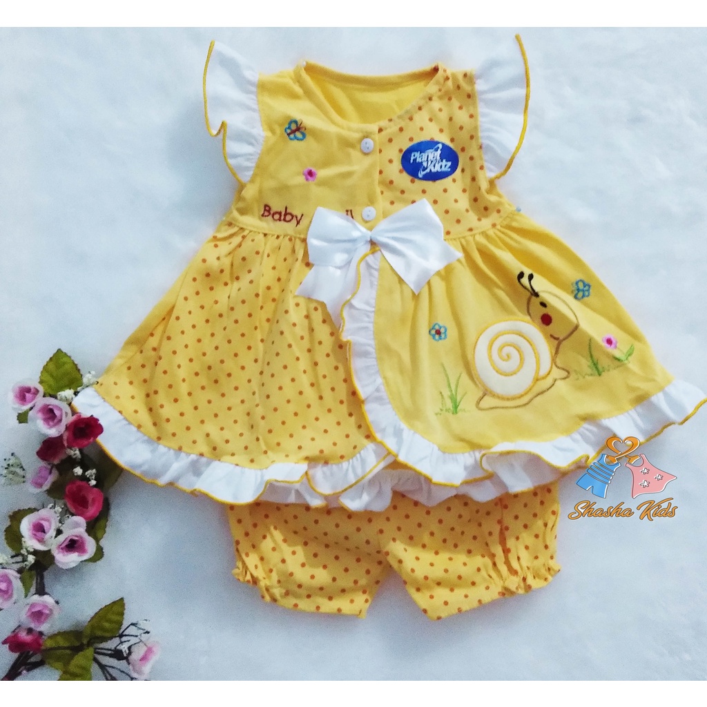 [M-07] Baju Bayi Perempuan/Dress Bayi Perempuan Planet Kids cantik motif siput 0-3 bln