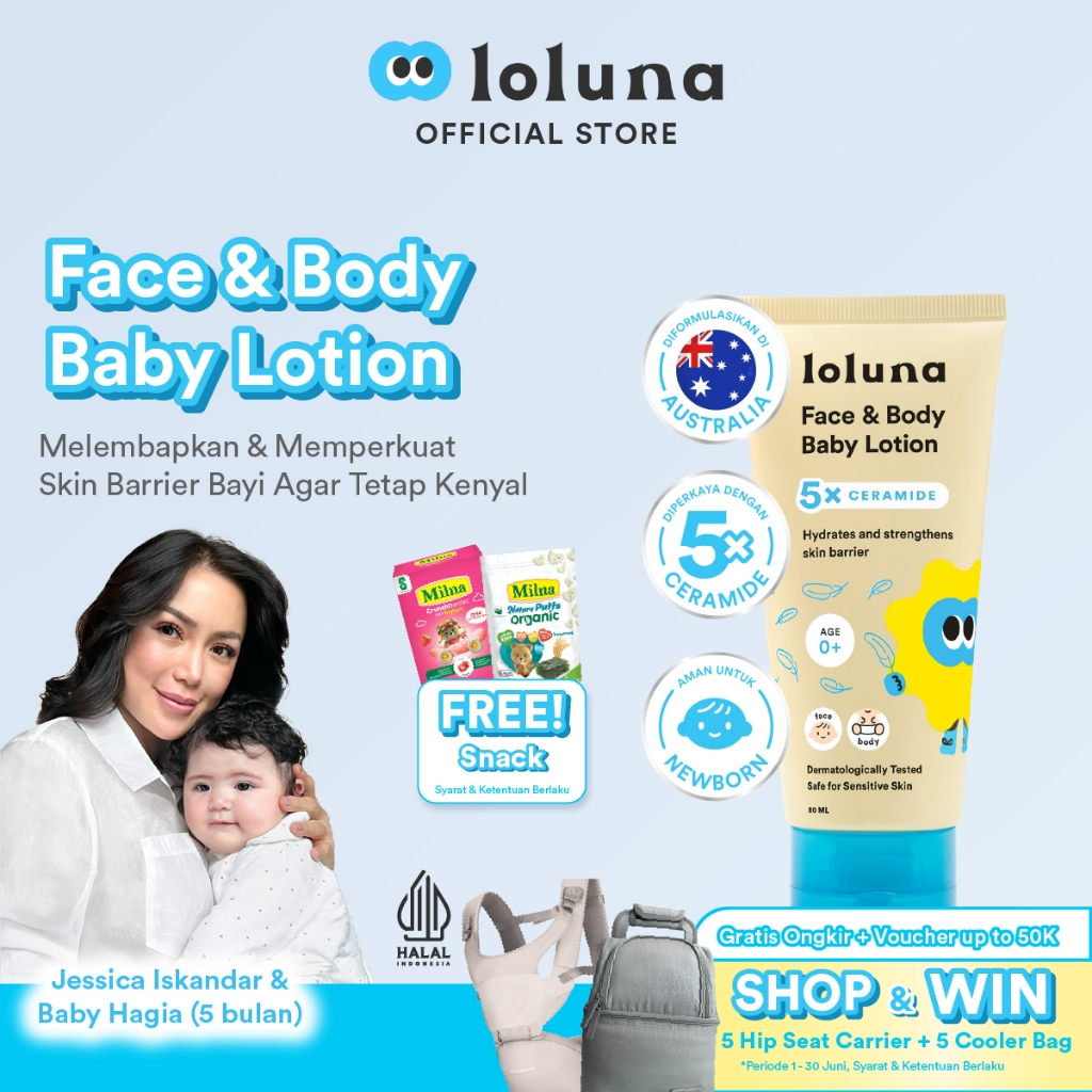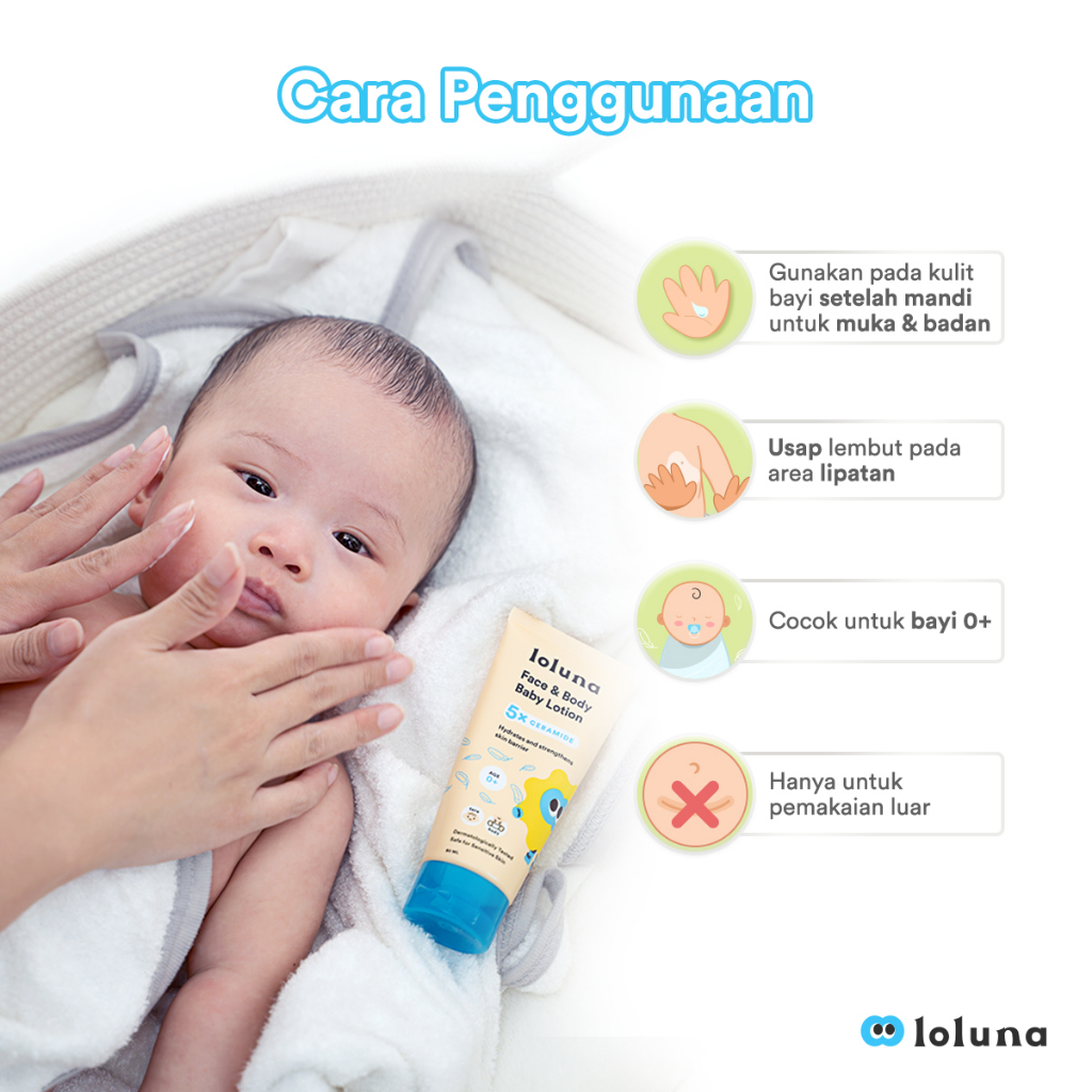 Loluna Face & Body Baby Lotion- Lotion Krim Muka dan Badan Bayi dan Anak / Krim untuk Newborn / 5x Ceramide