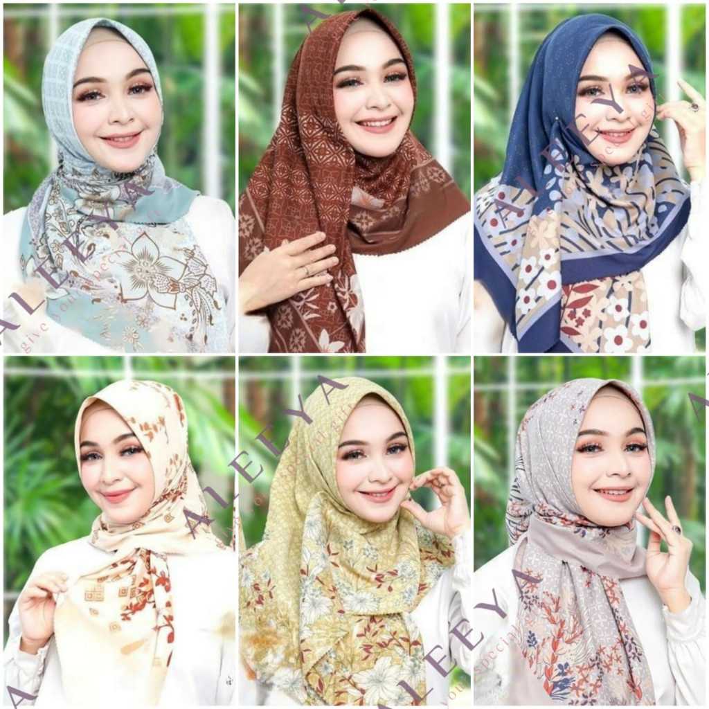 - Jilbab segi empat motif berukuran 110 cm x 110 cm