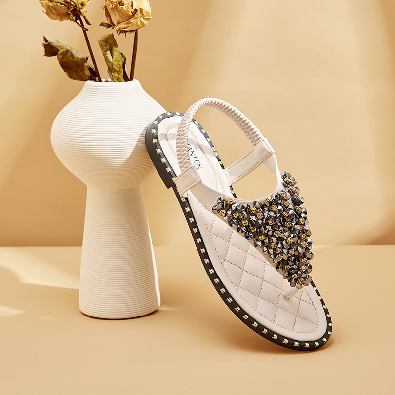 BOSTANTEN Sandal wanita baru dengan sol tipis sandal jepit batu bata glitter halus