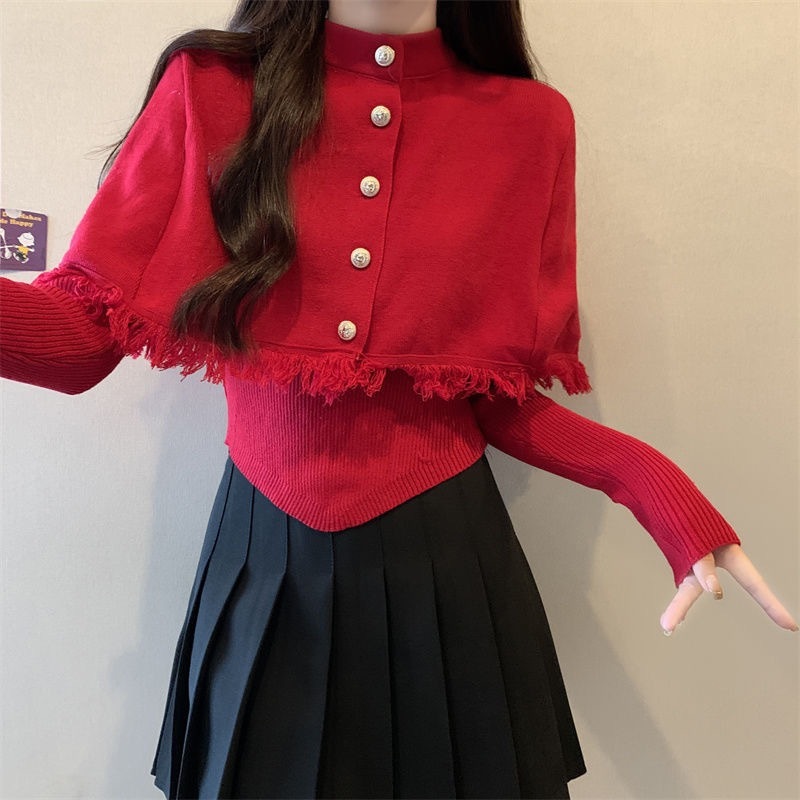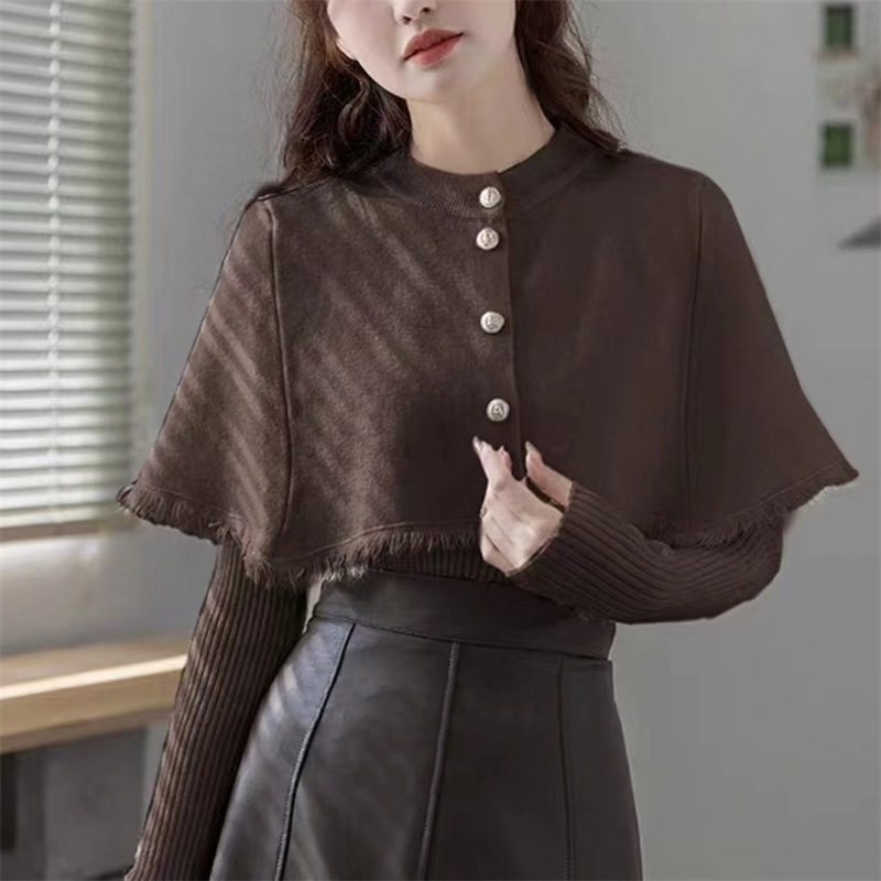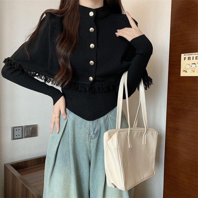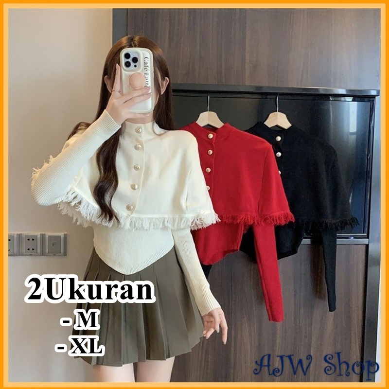 AJW Atasan Wanita Rumbai Dada Knit Premium Lengan Panjang WCD | Baju Wanita Rumbai Dada Korean Style | Atasan Rajut Wani