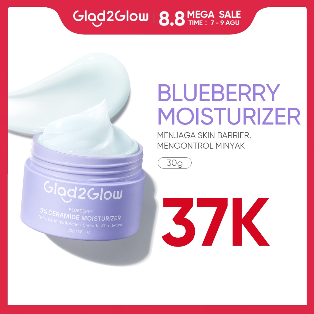 Glad2Glow 5% Blueberry Moisturizer Cream 5x Ceramide Skin Barrier Repair 30g | Pelembab Wajah Pemutih Wajah Facial Mois