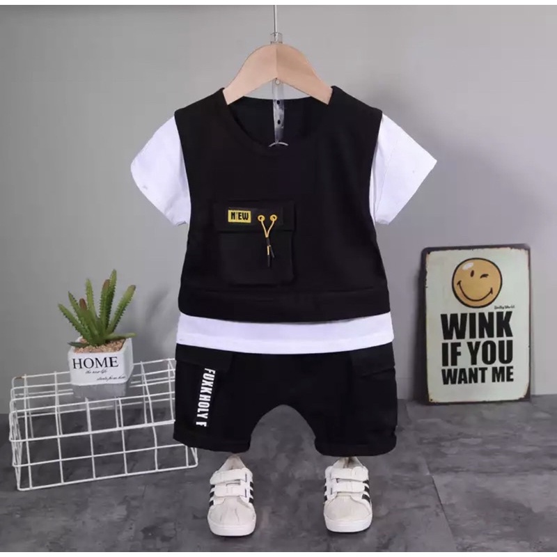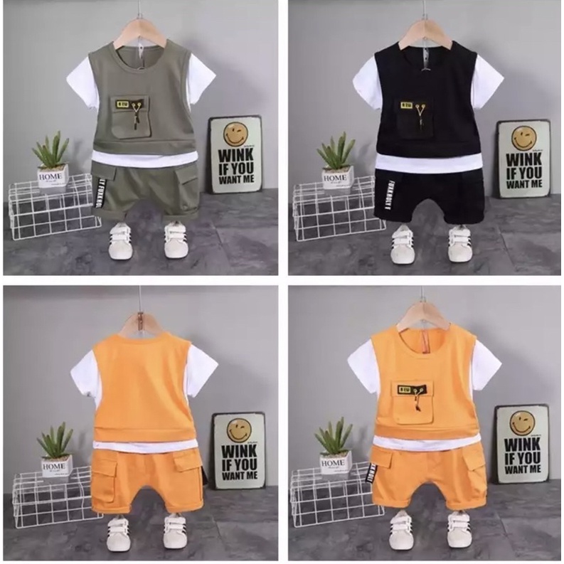 SETELAN BAJU ANAK LAKI LAKI SET ROMPI ANAK BAJU KAOS DAN CELANA ANAK LAKI LAKI 1-5TAHUN TERLARIS