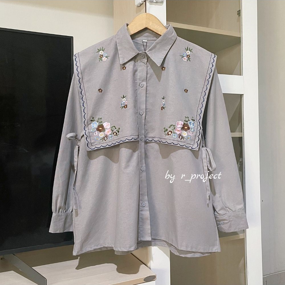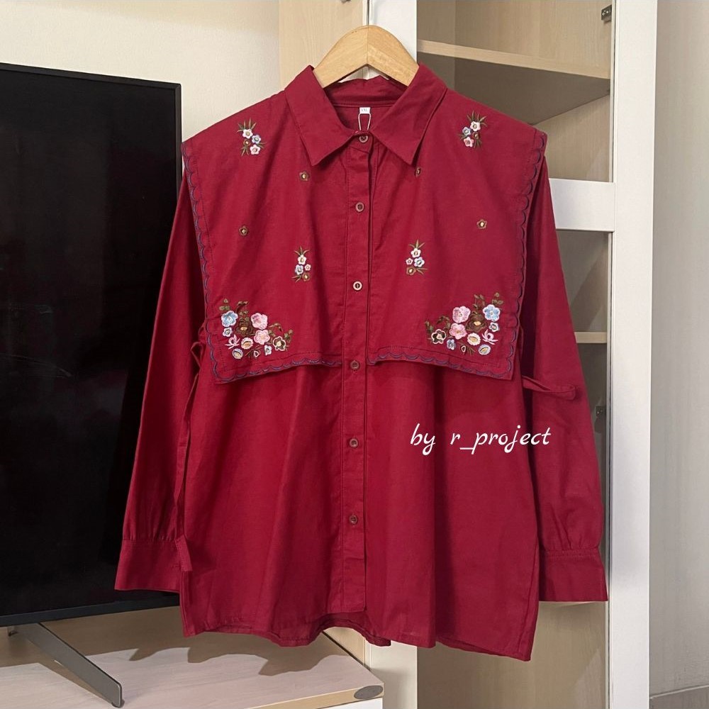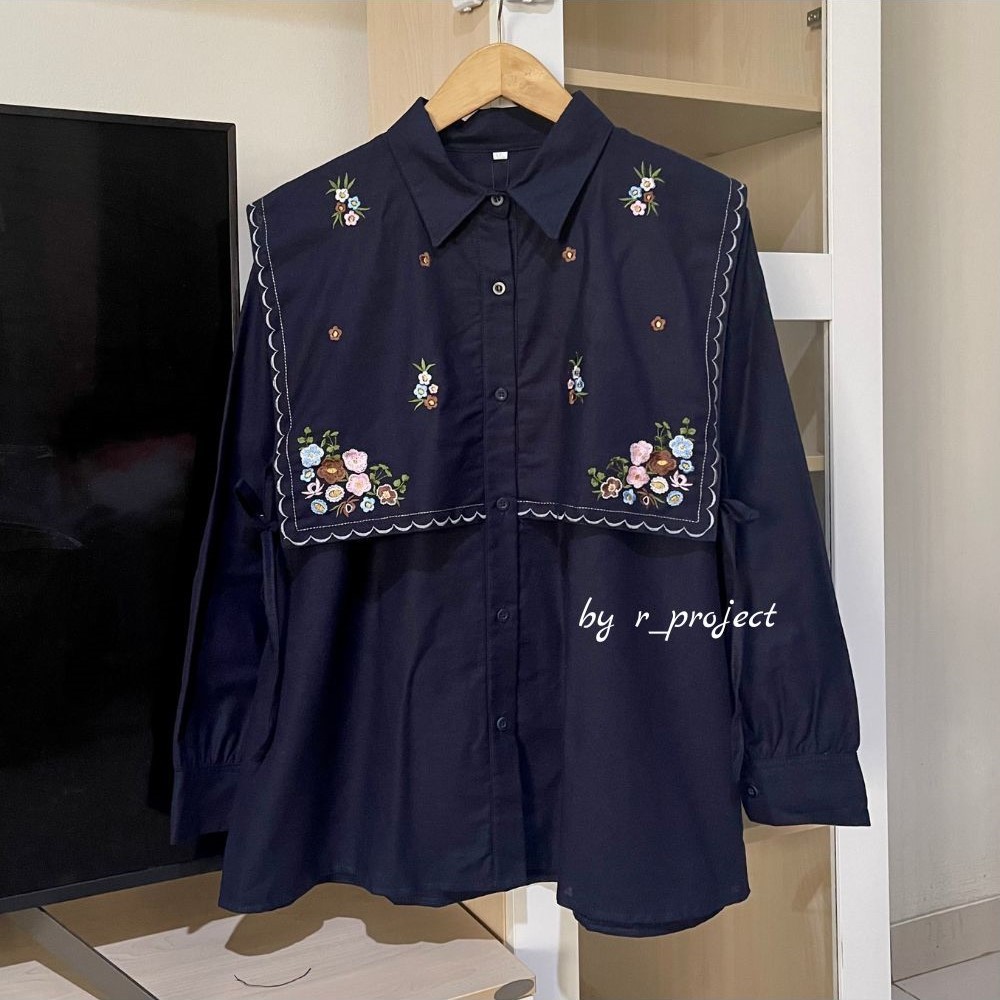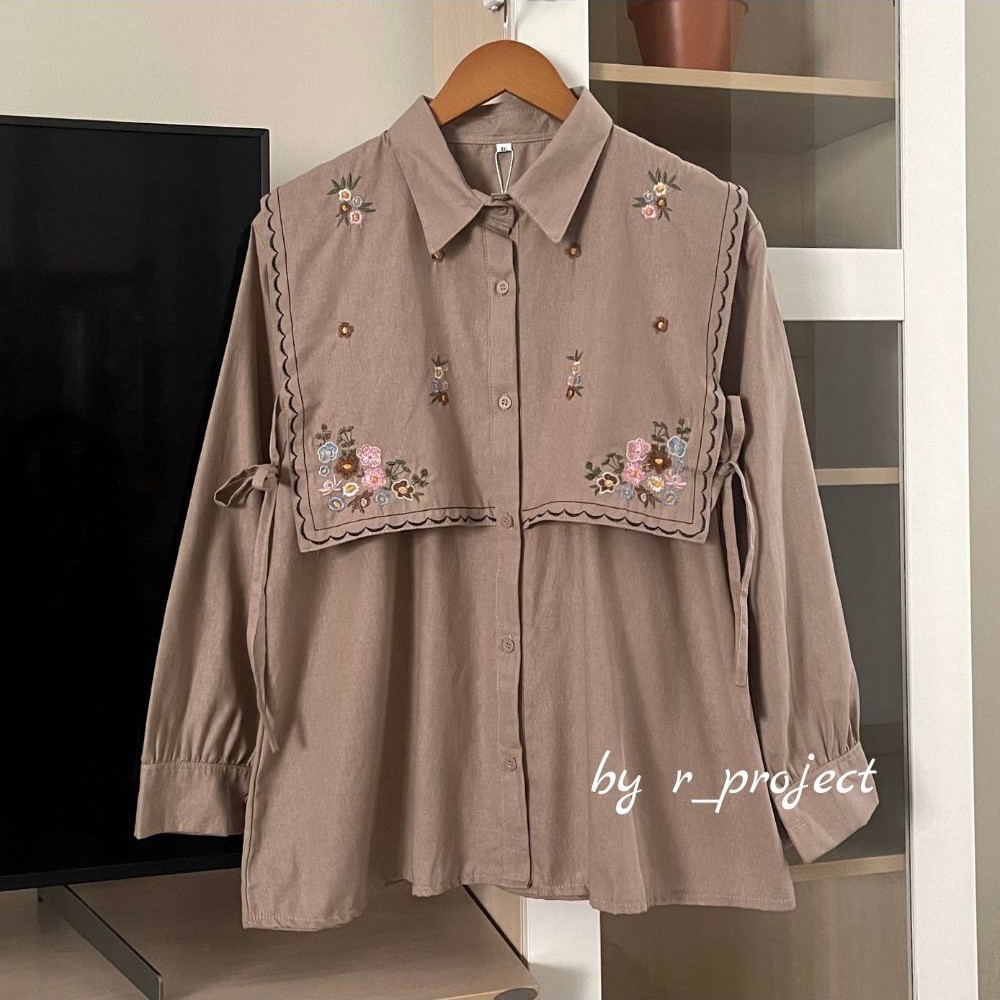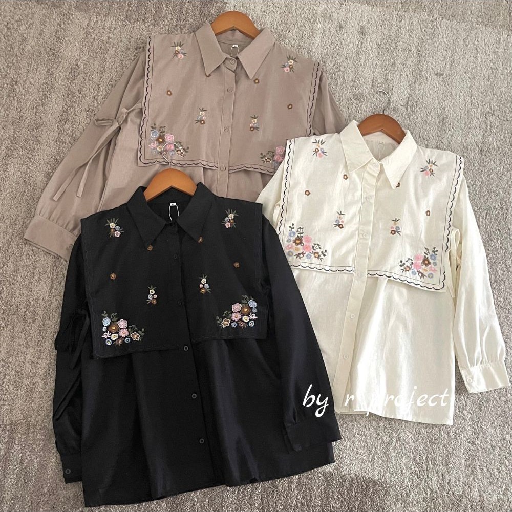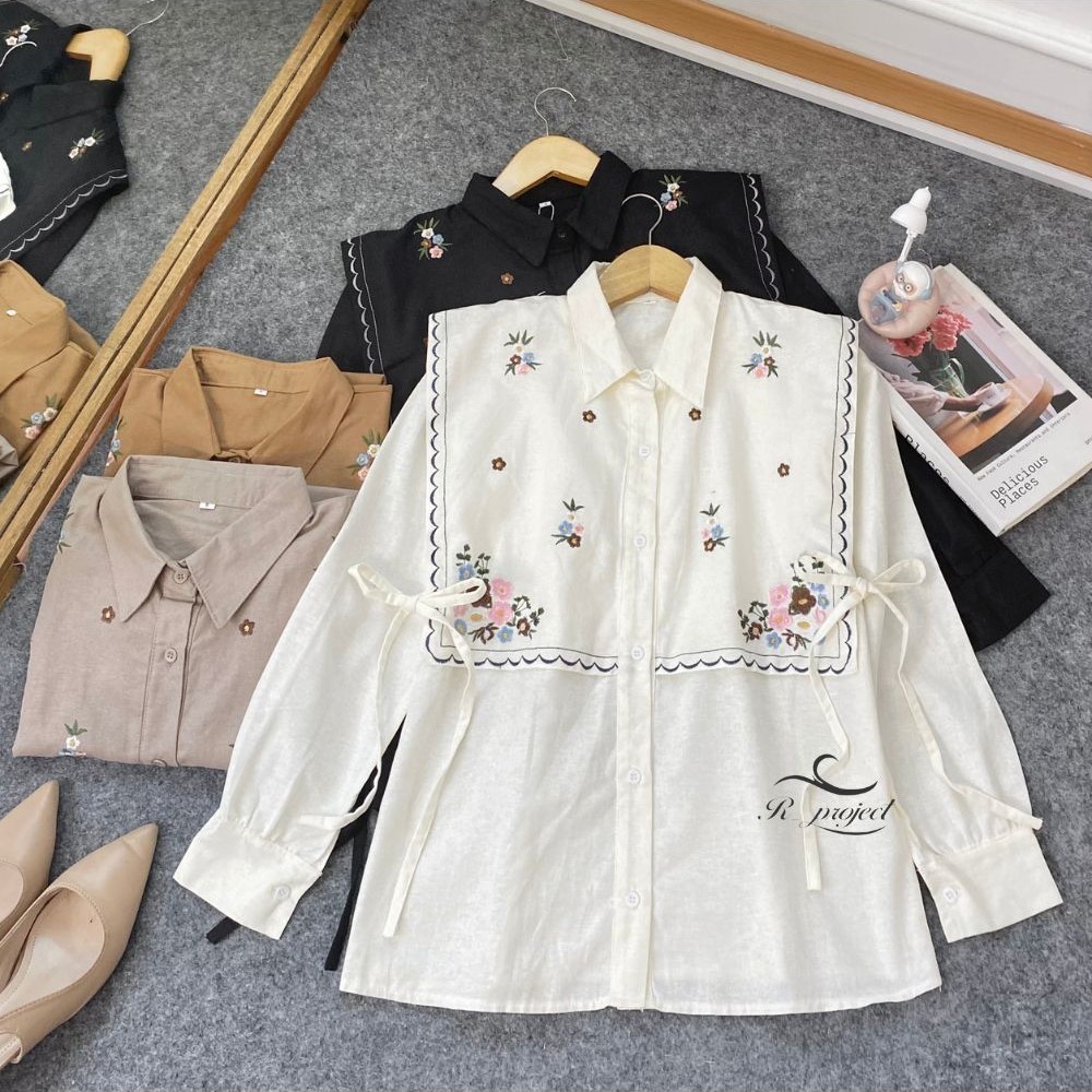 KEMEJA BORDIR BAHAN LINEN - Ukuran S M L XL XXL XXXL 5L - Kemeja Jumbo - Atasan Wanita Jumbo - Narika shirt - kemeja