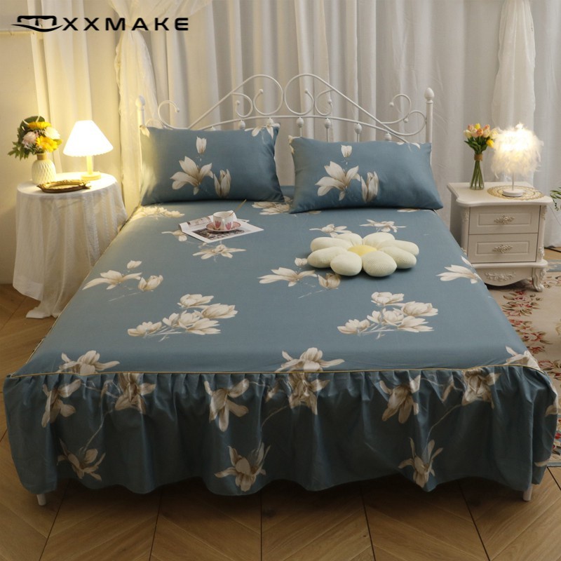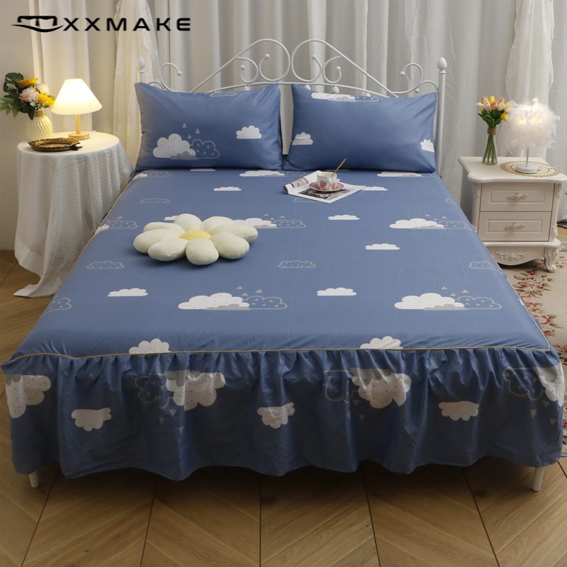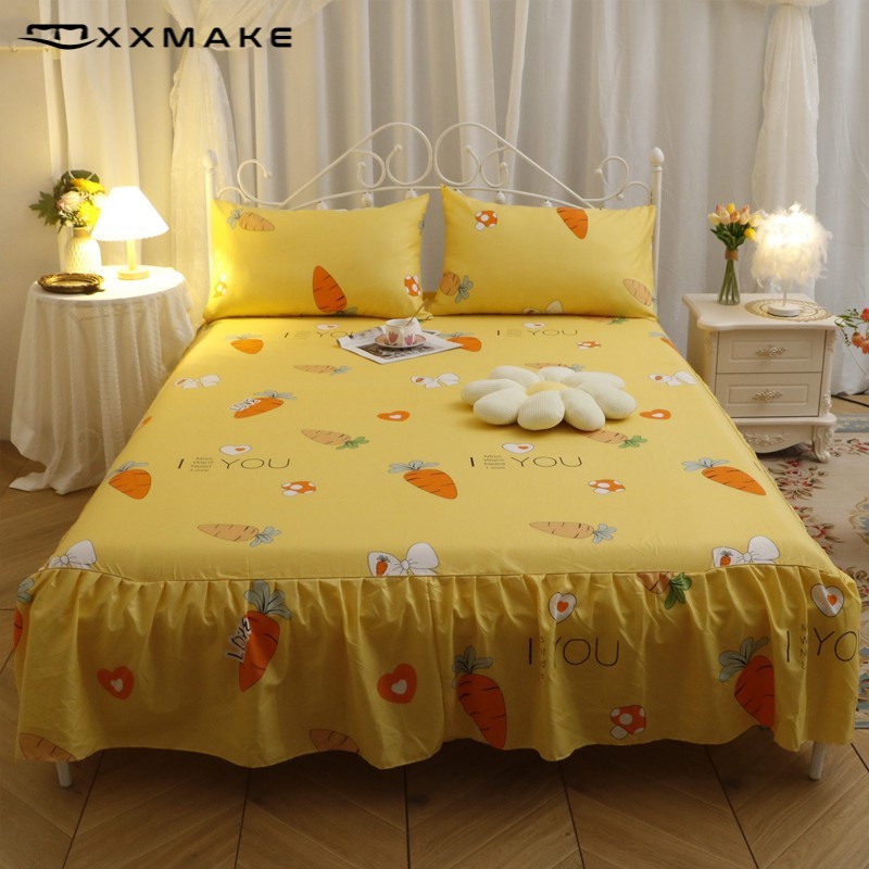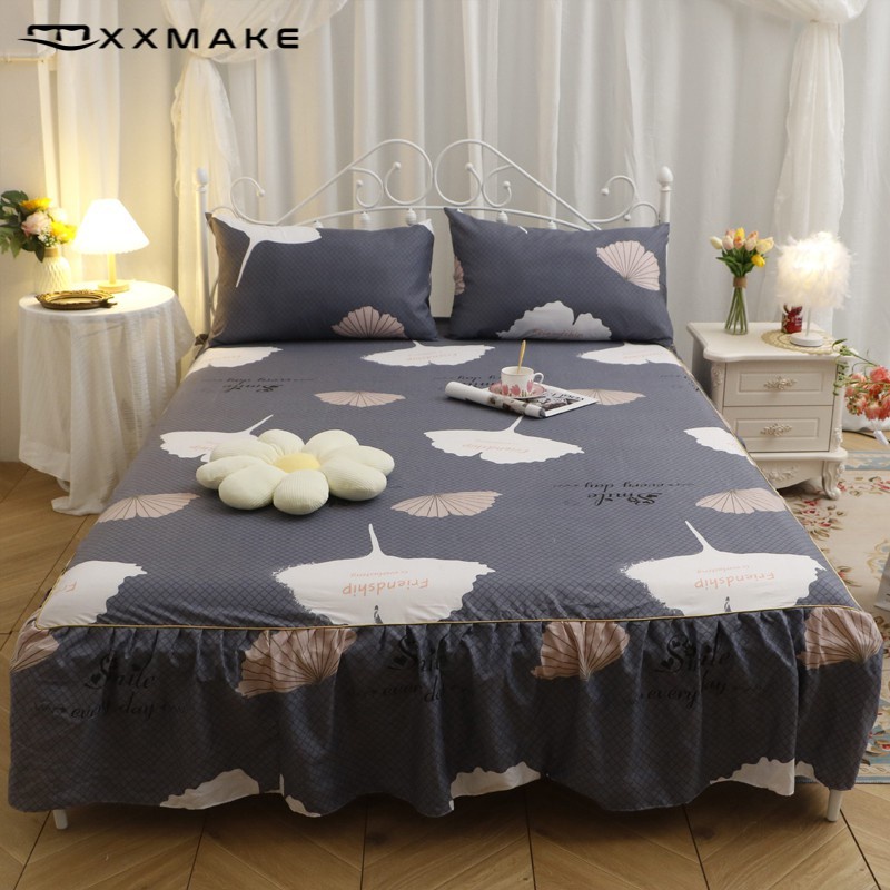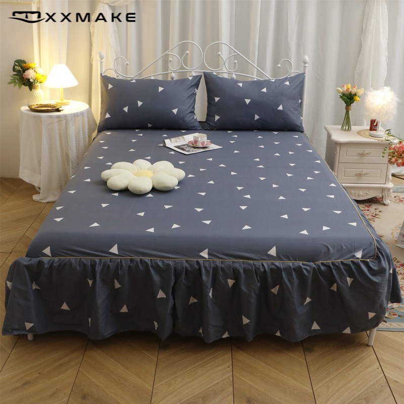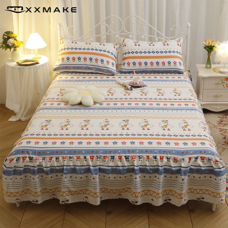 XXMake Sprei Rumbai Sprei Sarung Bantal Bed Cover Bedskirt Kualitas Bagus Pola Warna /Rok Kasur/Lembaran Set Tiga Potong