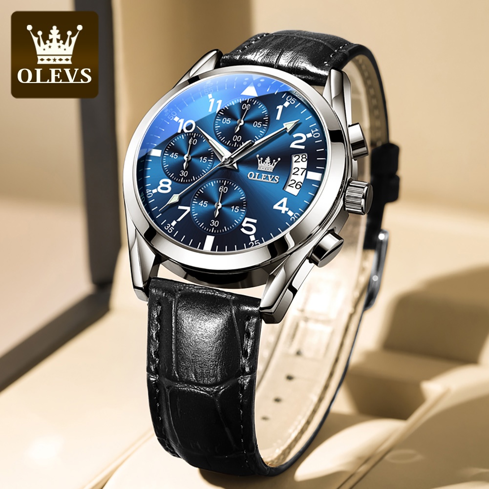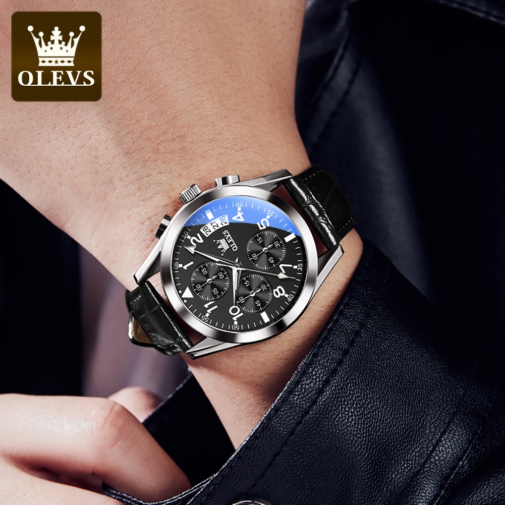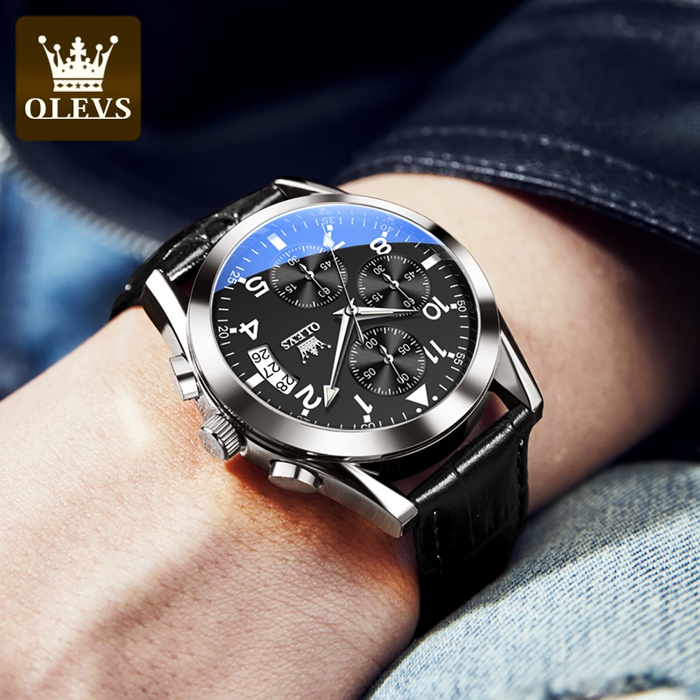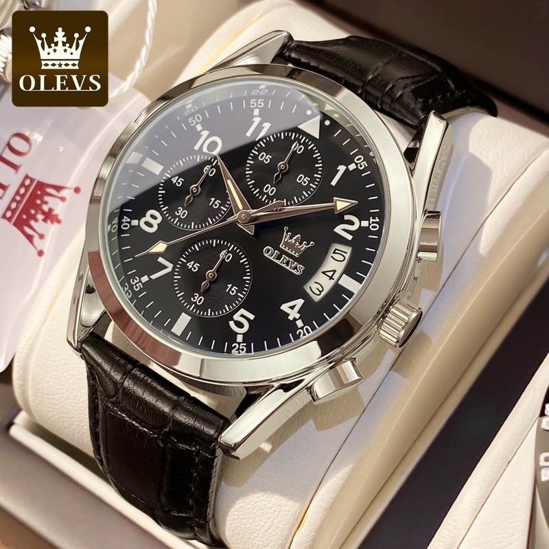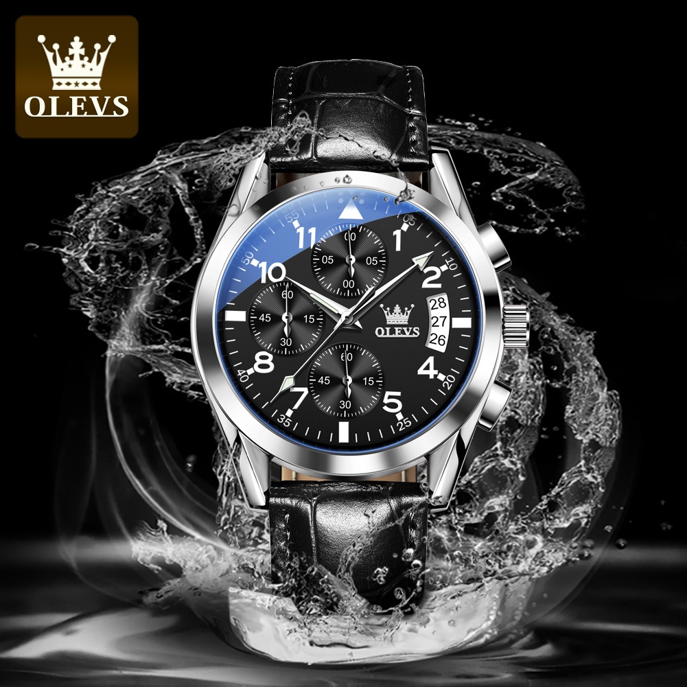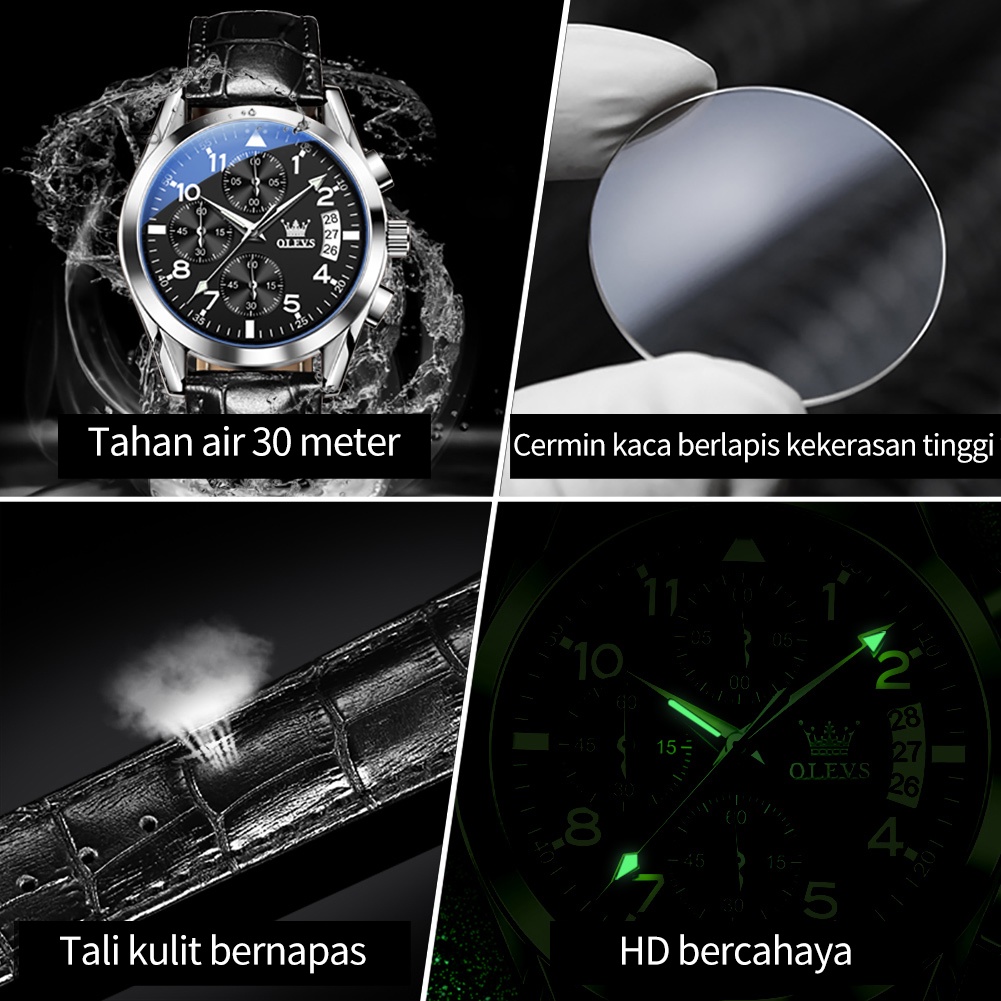 OLEVS Jam Tangan Pria Anti Air Original ahan kulit Keren Led Multifungsi Chronograph Watch Men 2878