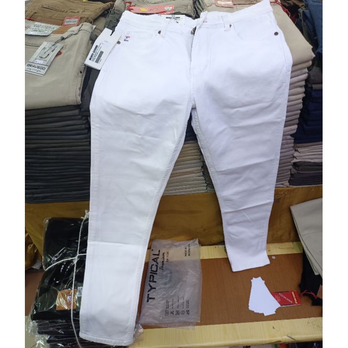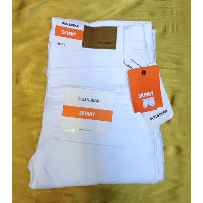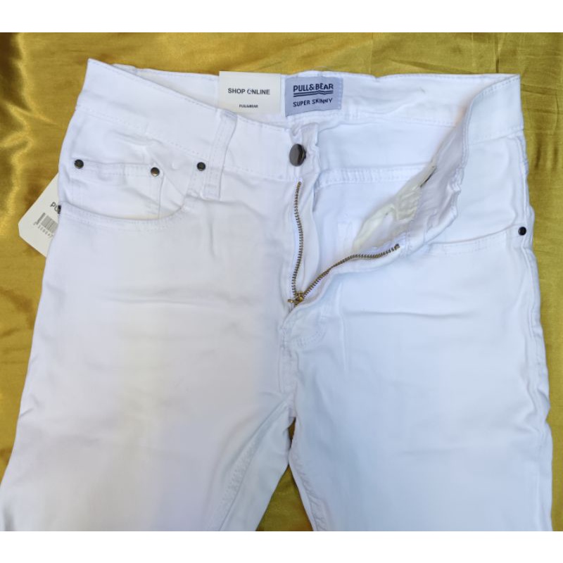 Celana panjang Super Skinny Pull & Bear Putih bahan denim Stretch / Celanana Panjang pria Pull n Bear terlaris