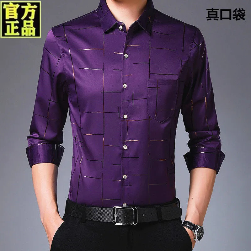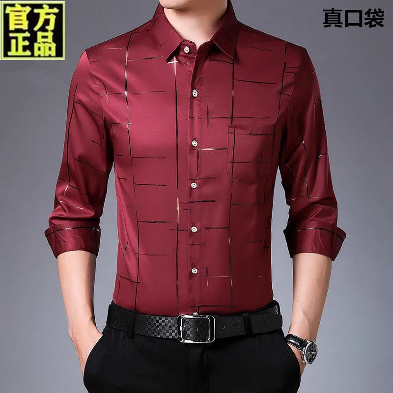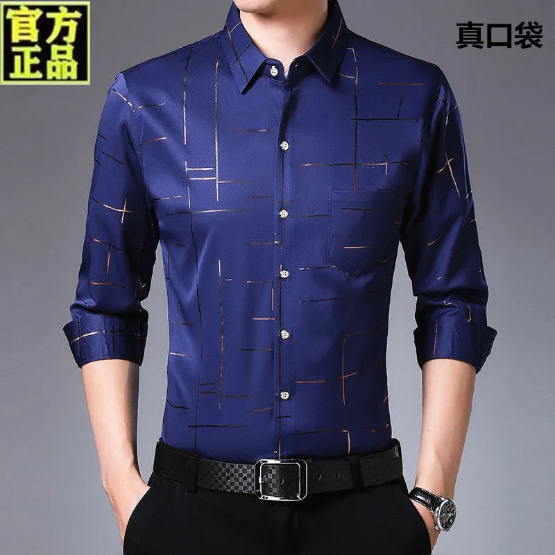 Kemeja/Pria/Shirt/Import/Premium/Keren/Motif/Thin Long Sleeve Men's Korean-Style Slim Print