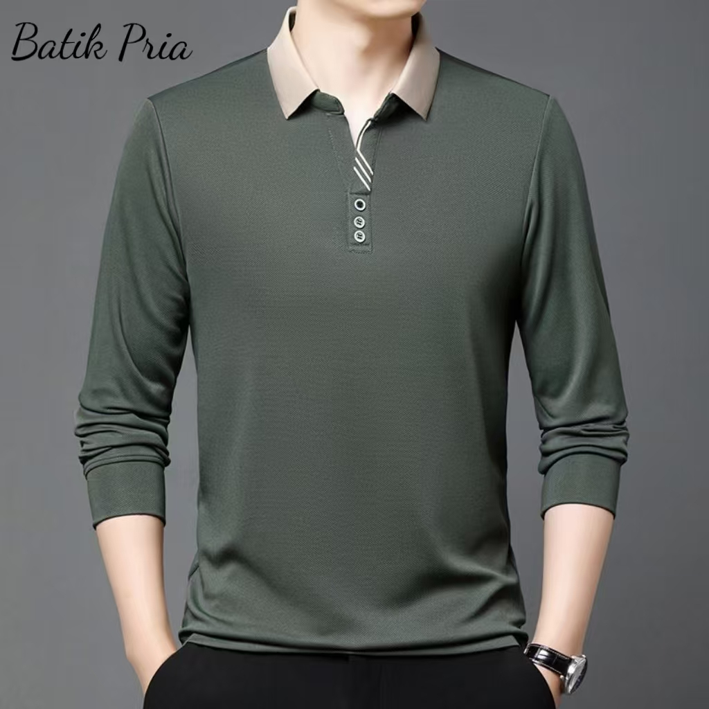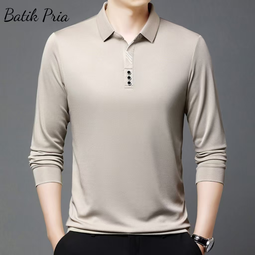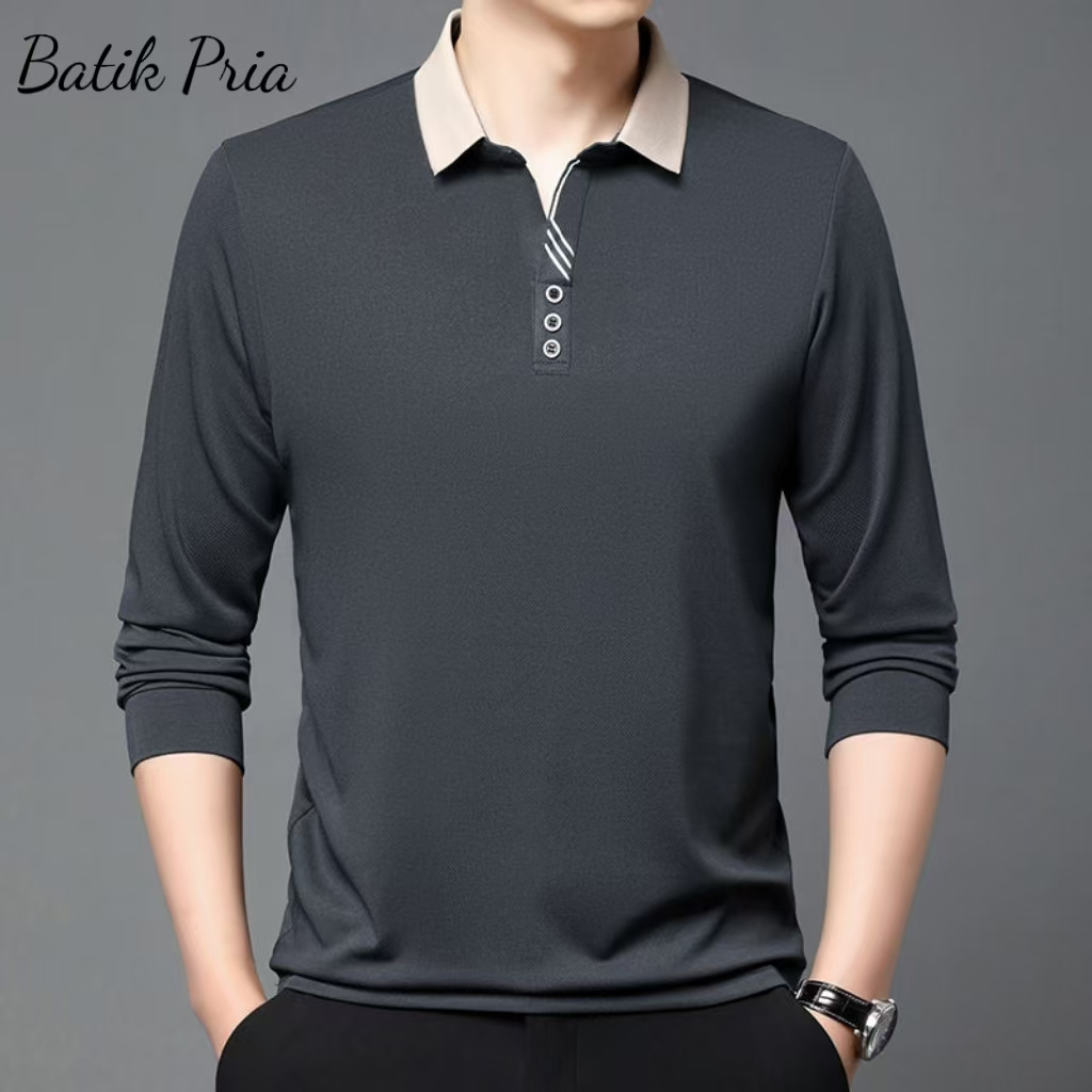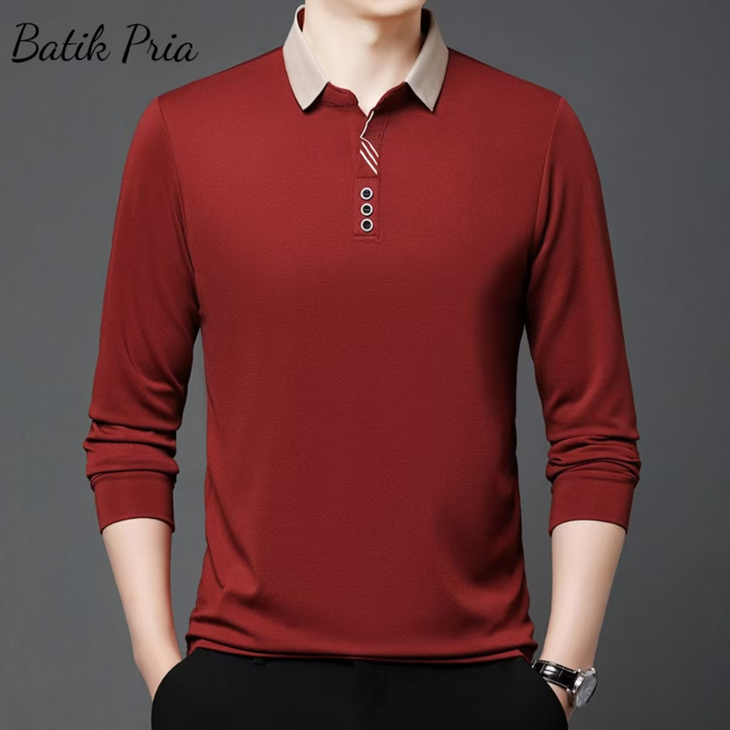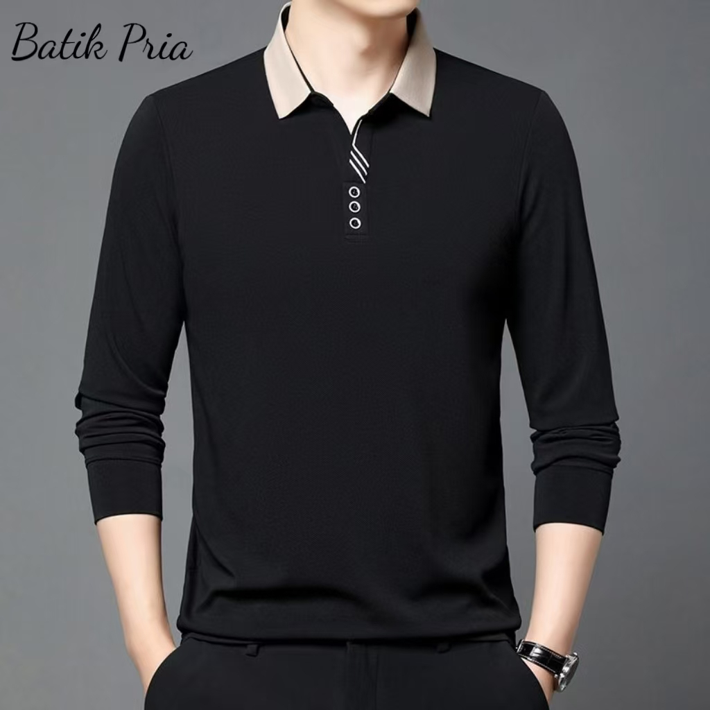 Men's Lapel POLOT T-shirt Long Sleeve Men's Loose Business Autumn Top Casual Bottoming Dad