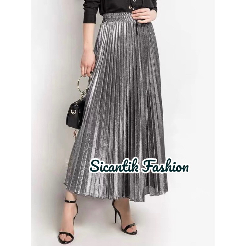 Rok PLISKET Bludru Panjang Dewasa Premium / Brudu Velvet Premium / Rok Kilat Wanita