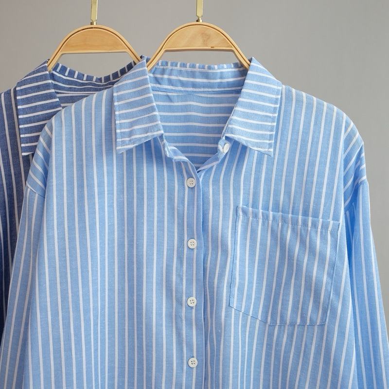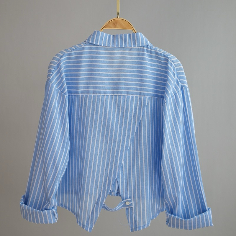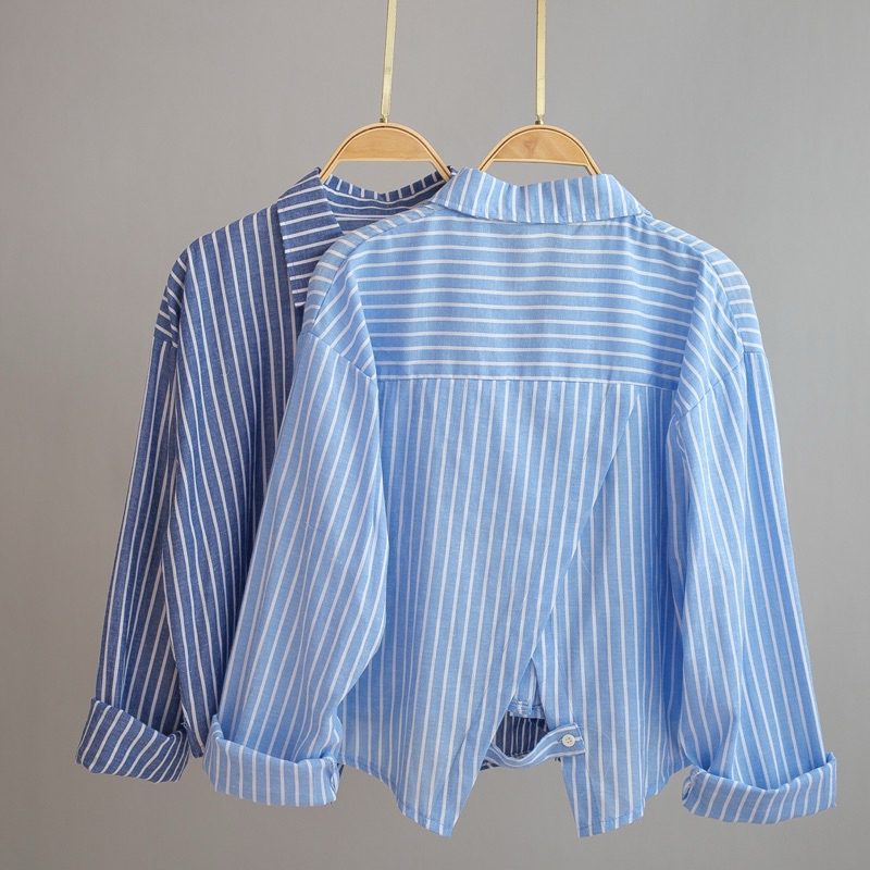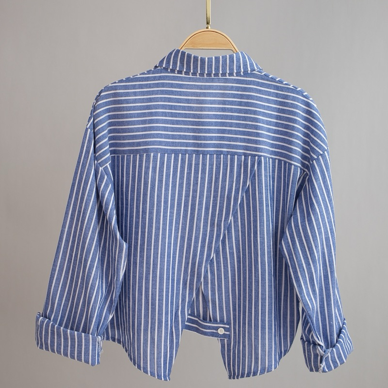 Kemeja Crop Top Korean Style / Blouse Kemeja Crop Wanita Casual P34 salur