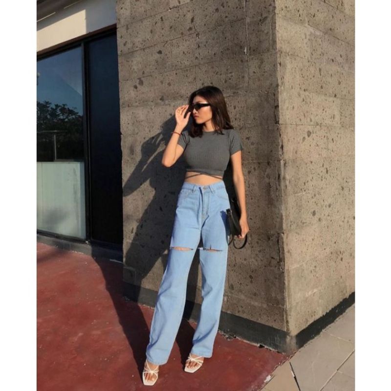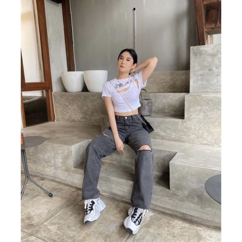 SHANA HIGHT WAIST KULOT JEANS SOBEK CELANA JEANS WANITA