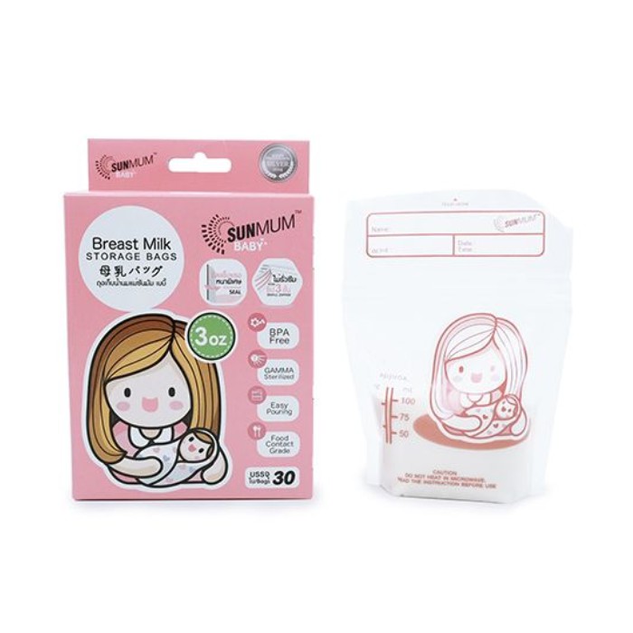 Kantong ASI SUNMUM Baby dilengkapi dengan TRIPLE resleting anti bocor, dan terdapat lengkungan pada bagian atas kantong agar ASI dapat dituang dengan mudah ke botol susu serta terdapat tempat untuk menuliskan nama, tanggal dan volume ASI