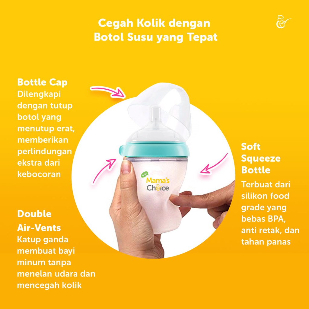 [{"t":"Mama tau nggak, kalau bayi yang rewel dan tidak berhenti menangis itu menandakan bahwa ia sedang terserang kolik? Salah satu penyebab kolik adalah banyaknya udara yang terhirup dari botol susu ketika ia sedang minum. Hal tersebut sangat membuatnya tidak nyaman lho, Ma. Maka dari itu, jangan sampai si kecilnya Mama mengalami juga, ya! Yuk, cegah kolik untuk menyerang bayi dengan Dot Bayi Botol Susu Mama's Choice!\n\nDot Bayi Botol Susu Mama's Choice:\n\n- Minimalisir udara masuk, mengurangi risiko kembung dan kolik pada bayi\n- Kontur botol yang ideal untuk bayi, memudahkannya menghisap, meremas, dan menstimulasi motorik kasar\n- Dot yang dapat menempel sempurna pada mulut bayi, memudahkannya untuk mengisap\n- Varian warna cerah dan kemasan yang menarik\n\nSiapa yang bisa menggunakan Dot Bayi Botol Susu Mama's Choice?\nSi kecil yang sedang aktif meminum susu lewat botol\n\nPilihan Warna:\nCyan\nYellow\n\nJaminan aman kami\n100% food grade\nBPA free\nPhthalate Free\nPVC Free\n\n"},{"i":"db21f1c3ffea32feca566aa990524cd3,1.000"}]