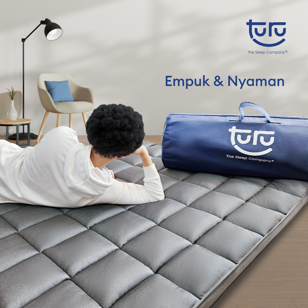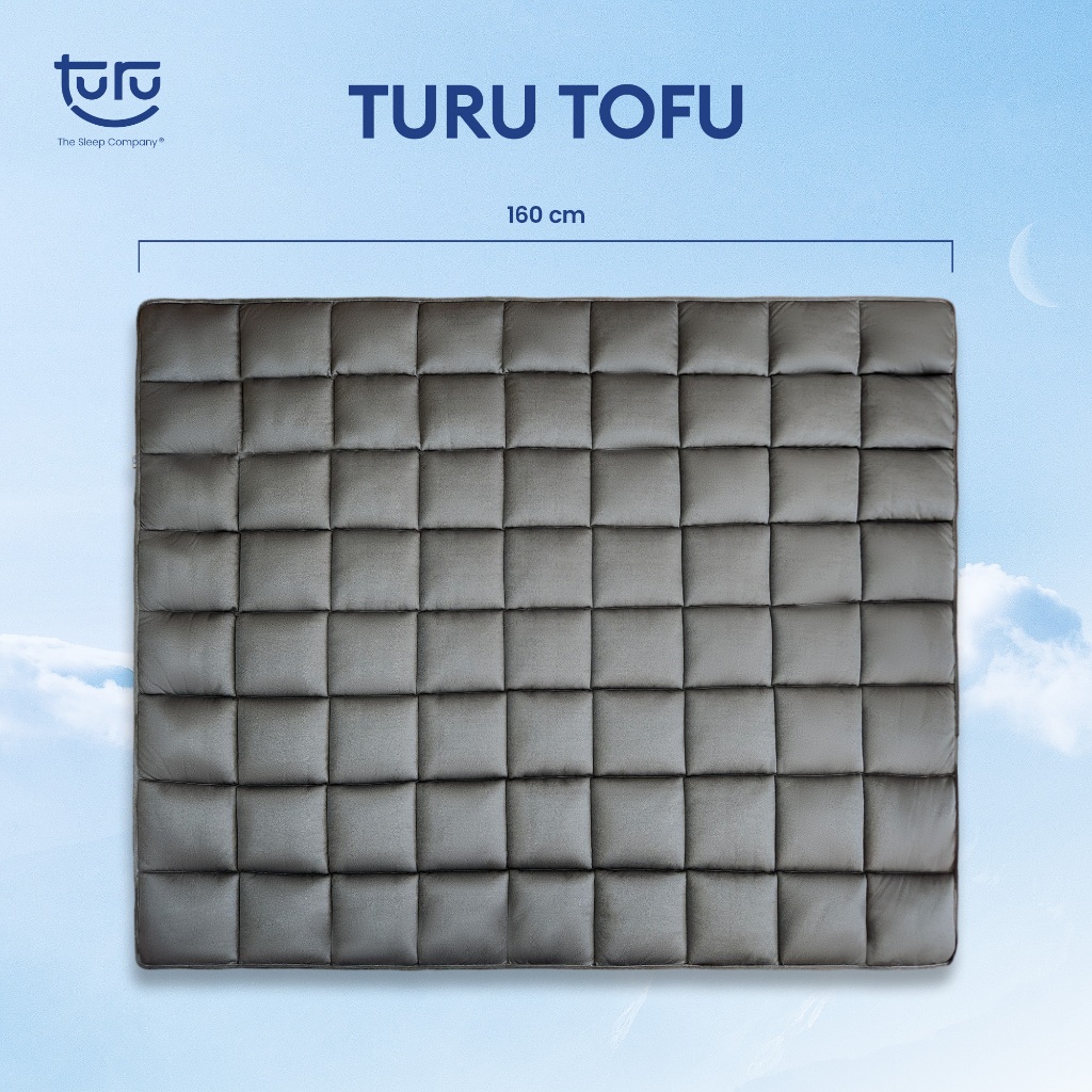 TURU Tofu merupakan varian kasur lantai multifungsi yang didesain untuk kamu yang menginginkan kenyamanan dan keempukan dalam kasur lantai, travel bed, atau bahkan alas bersantai untuk menonton TV, berbincang bersama tamu/ teman/atau saudara yang menginap. Kasur ini juga mudah untuk dibawa untuk jalan liburan dan traveling.