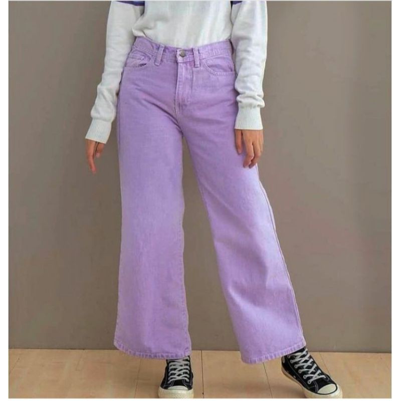CELANA KULOT JEANS HIGHWAIST // WARNA PUTIH LILAC