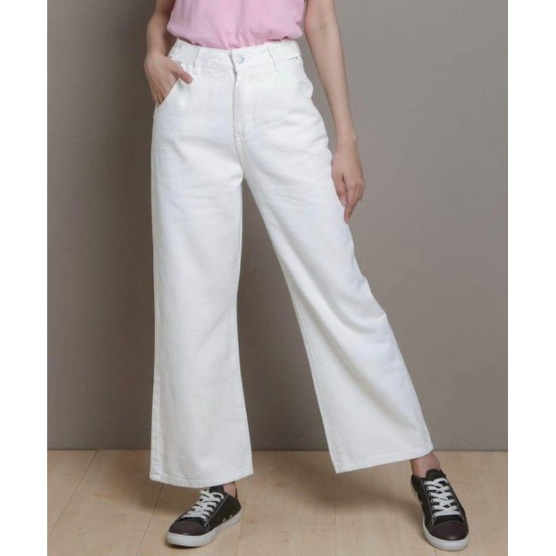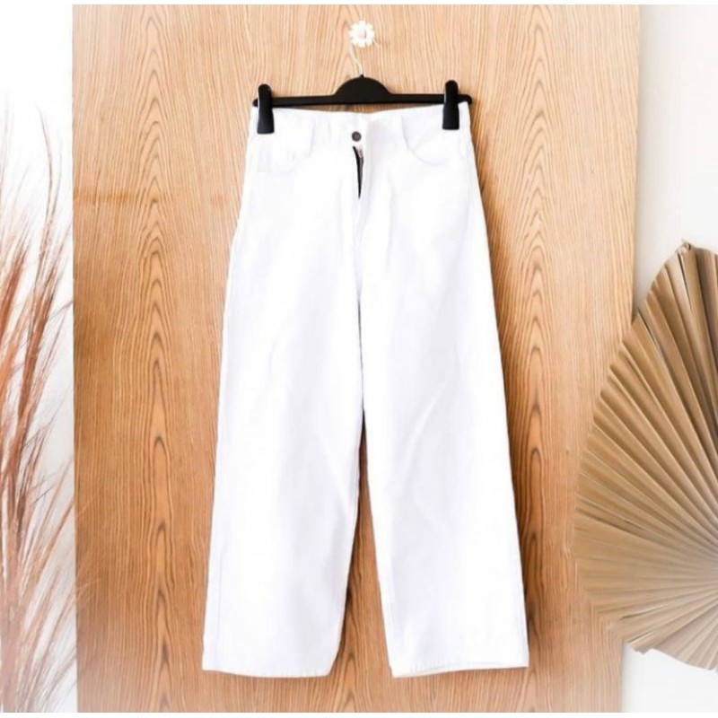 Celana kulot jeans wanita putih jins denim highwaist murah cewek cewe cullote Lepis cutbray levis
