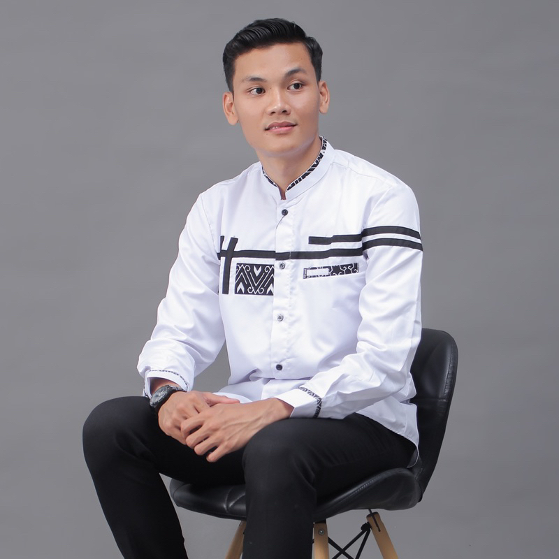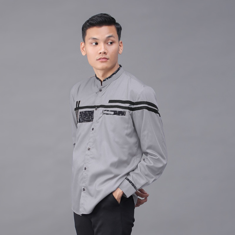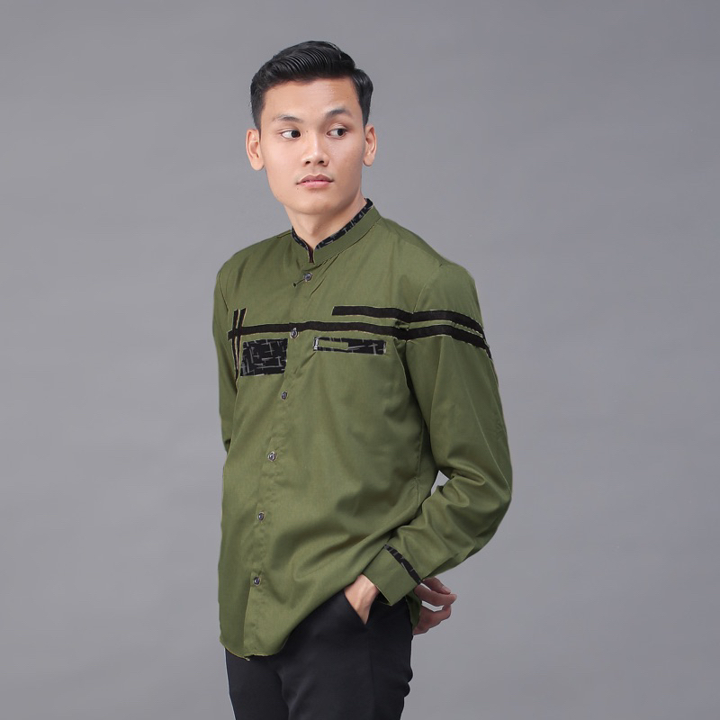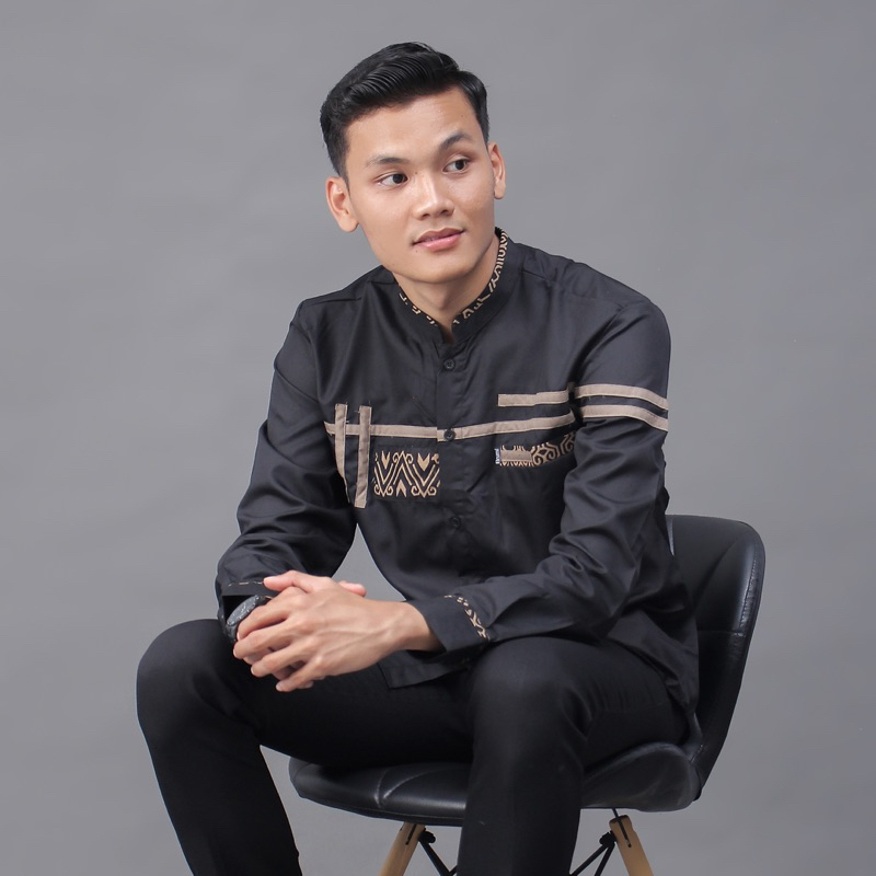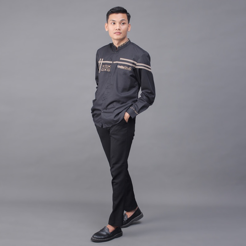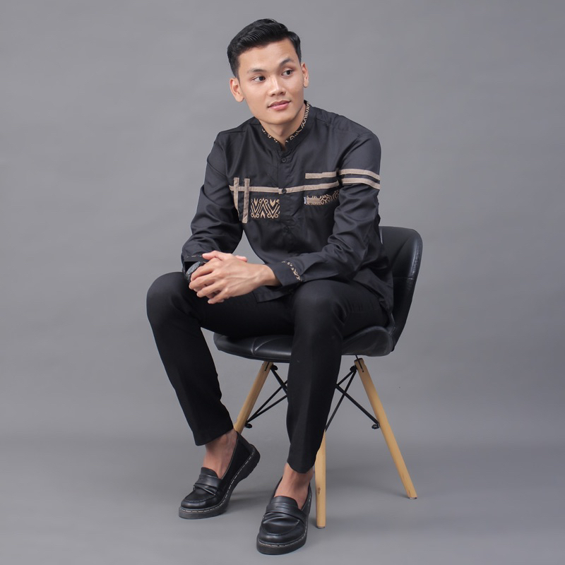 Baju Koko Pria Lengan Panjang Motif Zolied Warna Hitam Kombinasi Batik