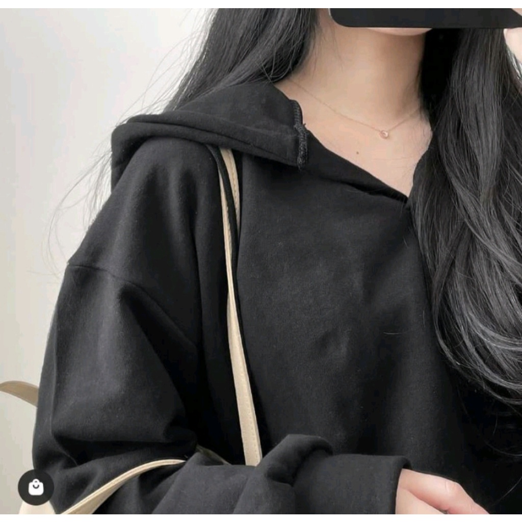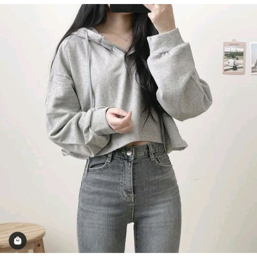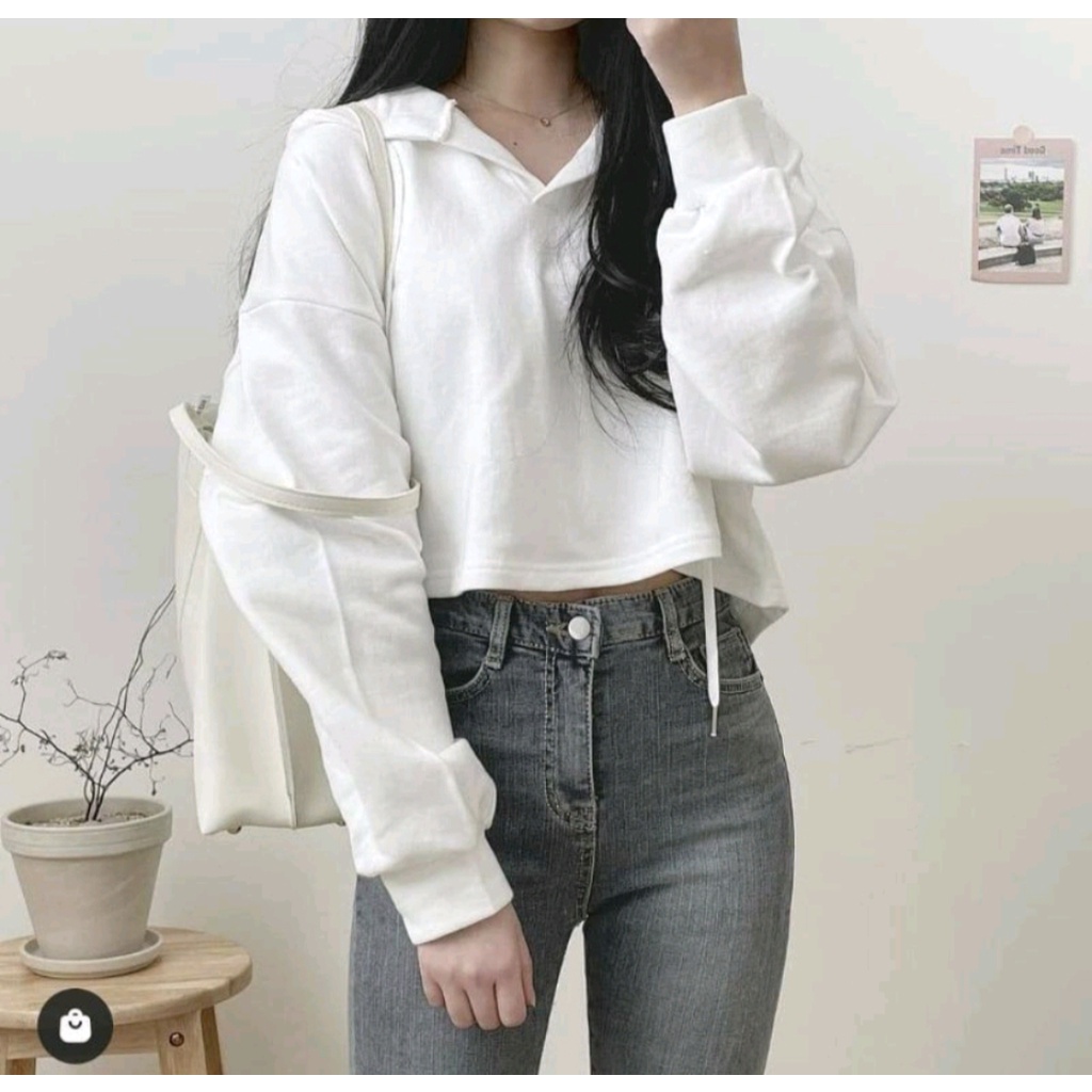 SWEATER CROOPE HOODIE POLOS OVERSIZE WANITA BAHAN FLECEE