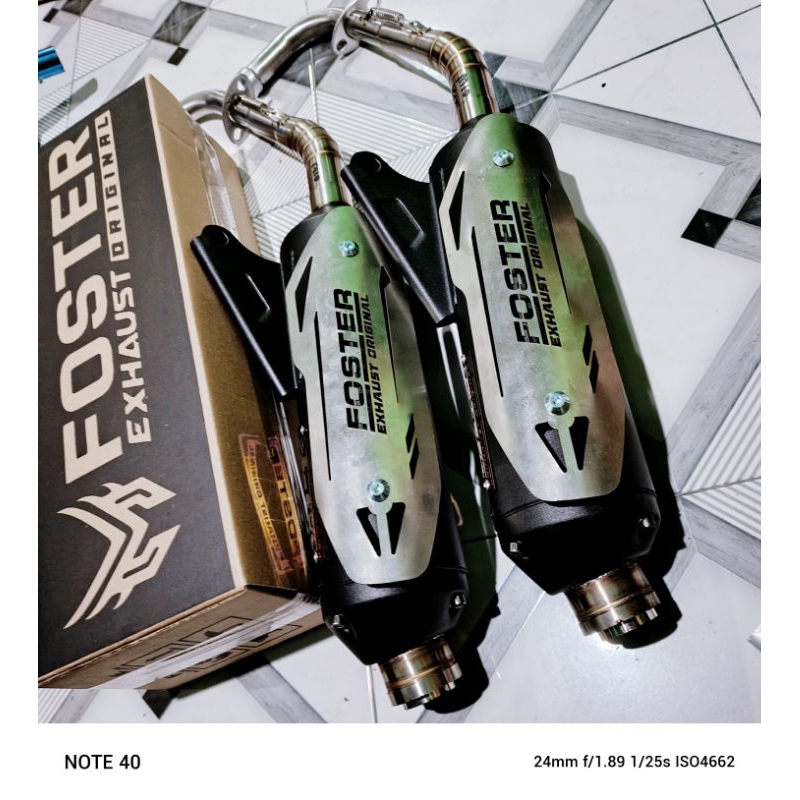 FOSTER EXHAUST untuk Mio Sporty, Mio Soul, dan Mio Smile – Knalpot stylish dengan suara mantap dan performa optimal, bikin motor kalian lebih bertenaga, tampil keren, dan makin percaya diri di jalan.
