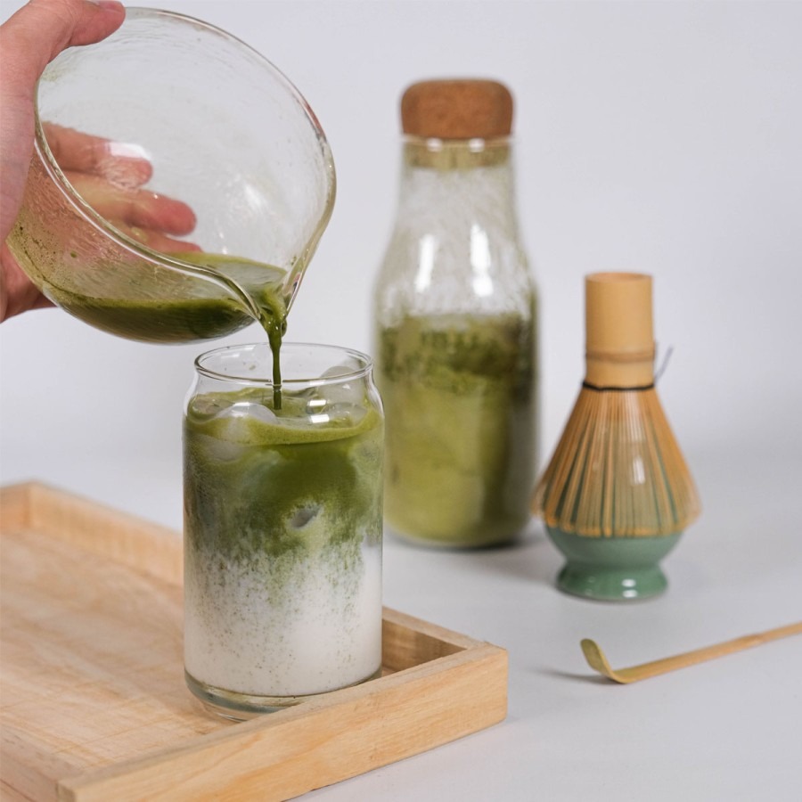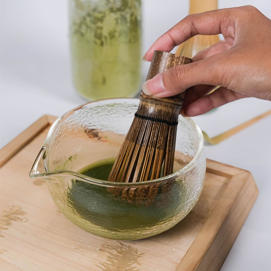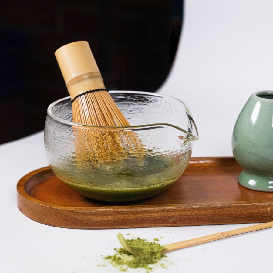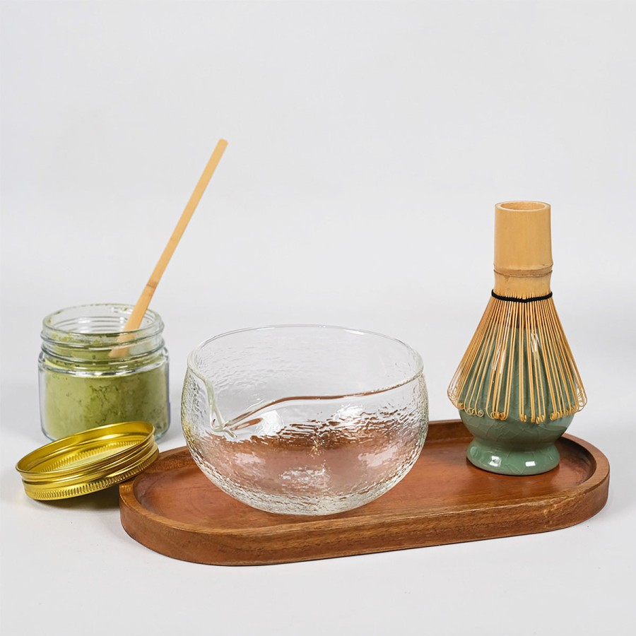 Matcha Bowl High Quality Textured Glass Chawan With Pouring Spout - Mangkok Matcha Bening