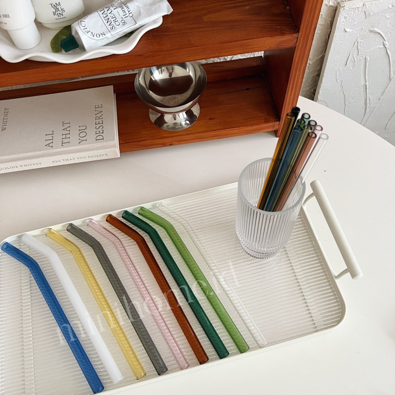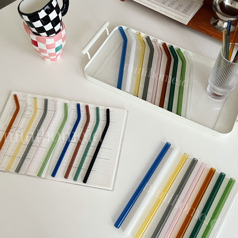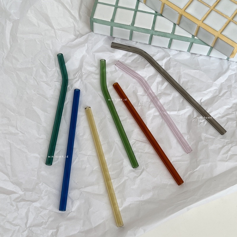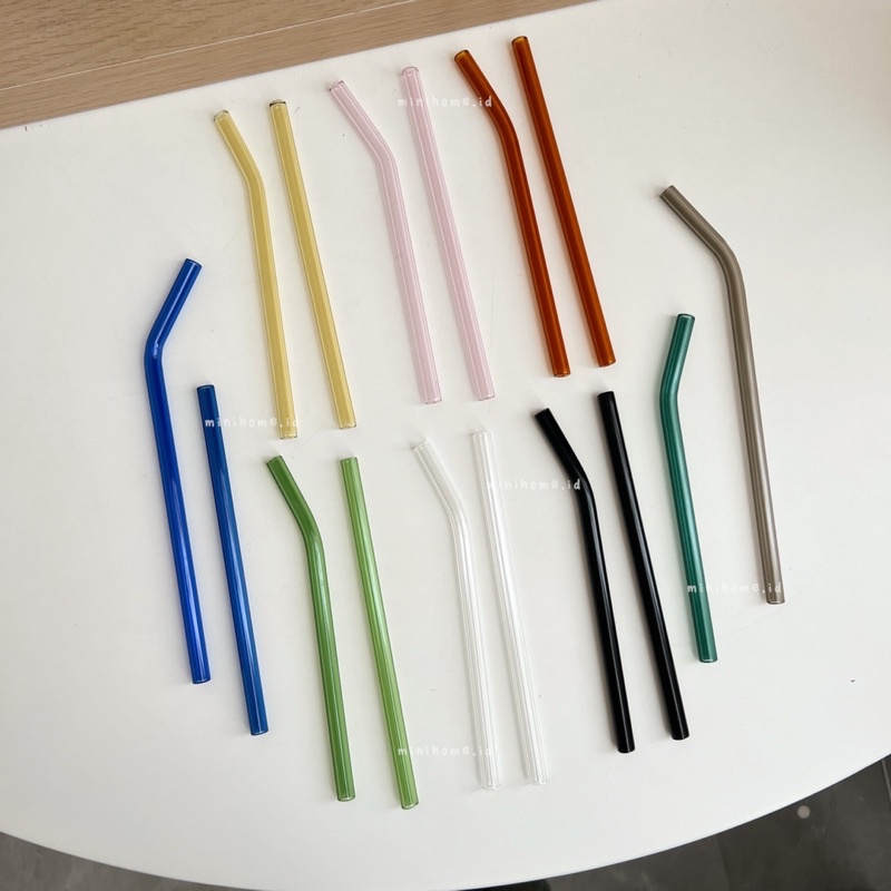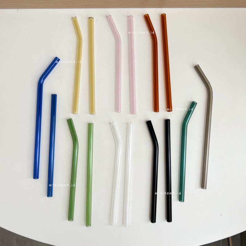 [MINIHOME] Sedotan Kaca Borosilicate Lurus Bengkok Smoothies Boba Bening Transparan Reusable Eco Friendly