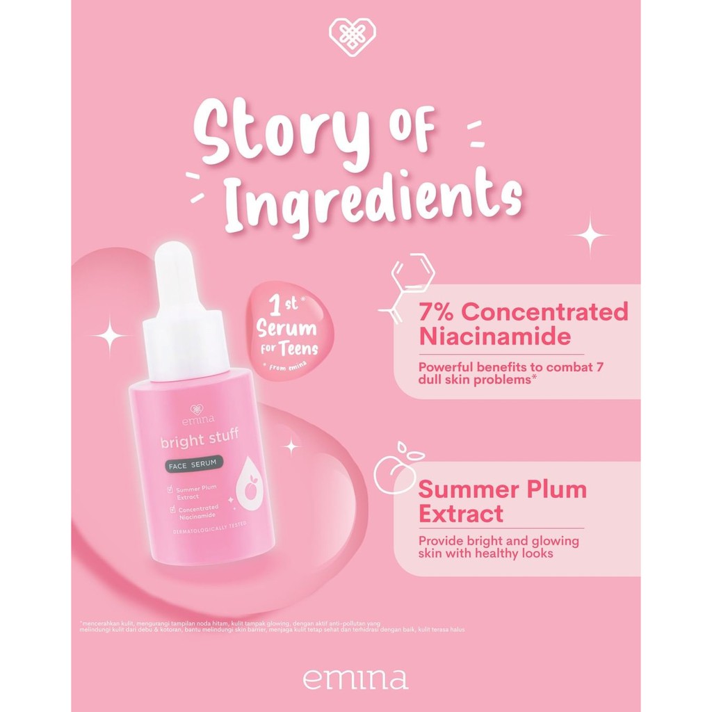 EMINA Bright Stuff Series (Toner/Face Wash/Micellar/Tone Up/Sheet Mask/Face Serum) Original BPOM