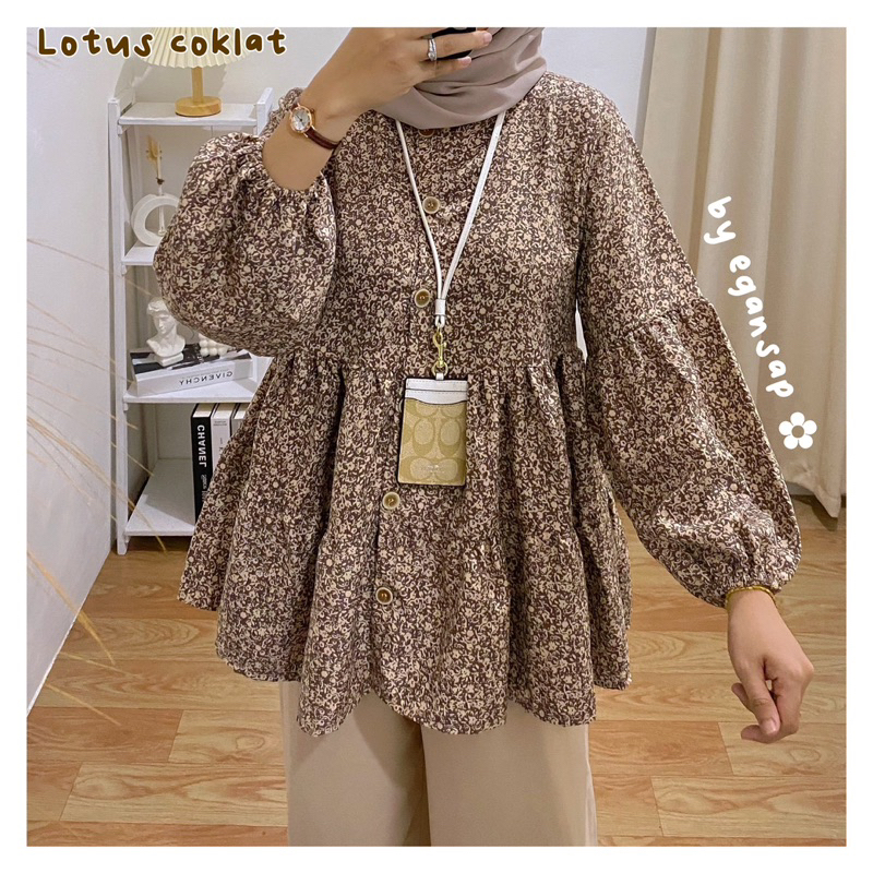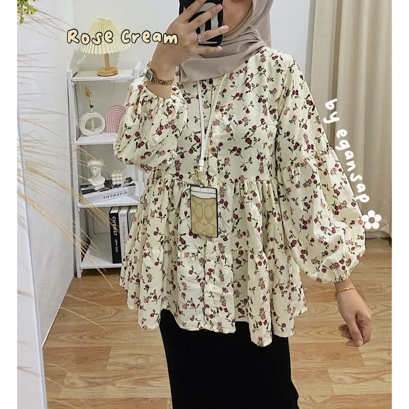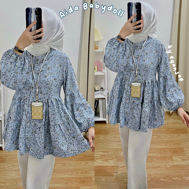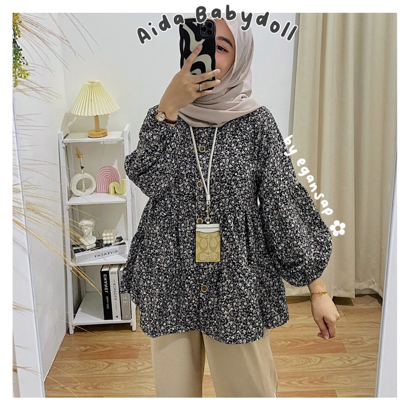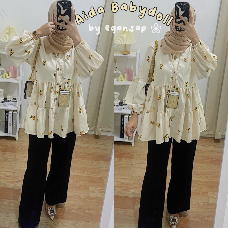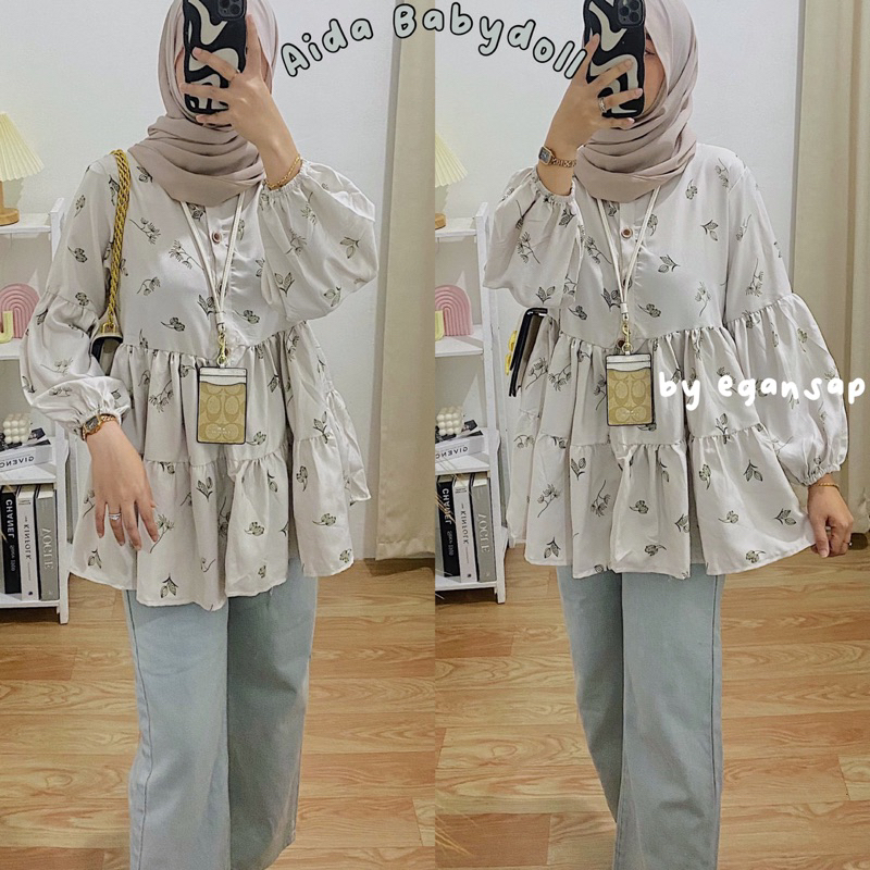 Aida Blouse BabyDoll | Kemeja Lengan Balon Flower Bunga