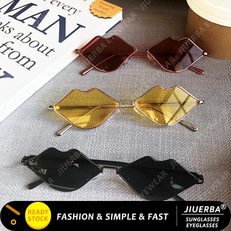 【Bayar di Tempat】INS Fashion Retro Besi Lips Kacamata Hitam Wanita/Pria