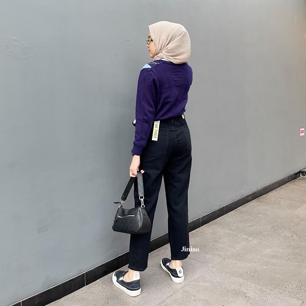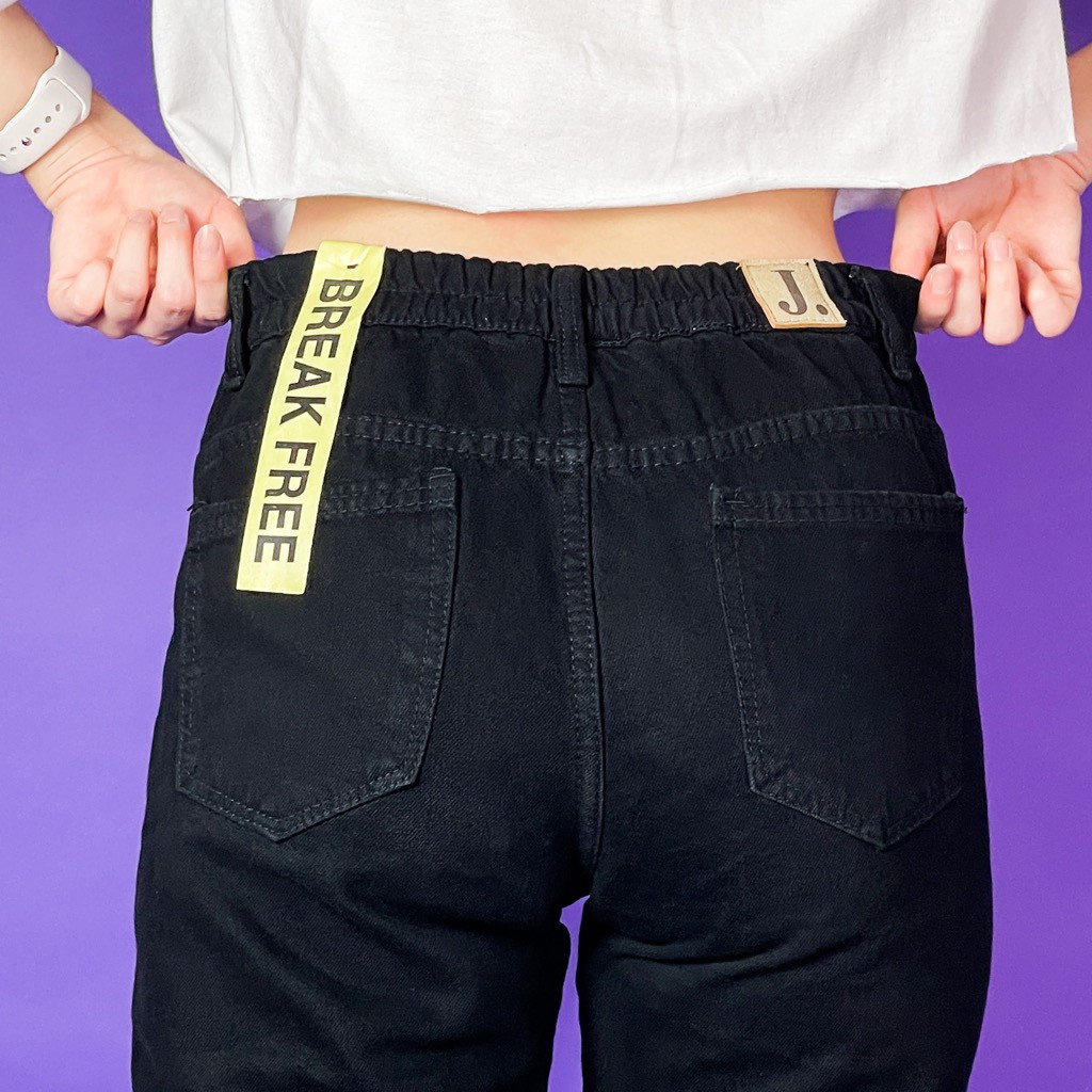 Jeans Anti Begah, Mom Jeans dari JINISO satu ini dibuat dengan model karet elastis di belakang pinggang. Mau aktifitas seharian, makan seharian, duduk seharian dijamin nyaman banget! #AntiBegah
