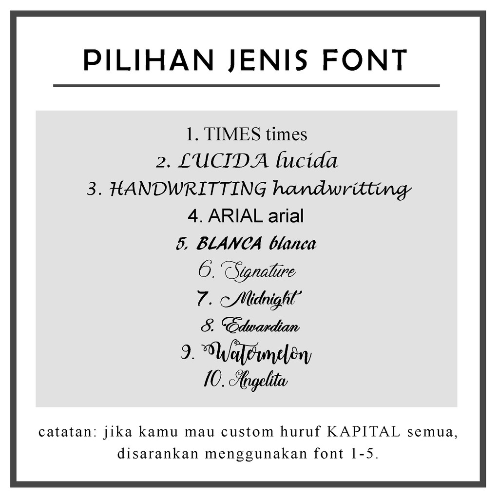 untuk kamu yang mau custom nama, jangan lupa infokan custom namanya apa dan jenis fontnya.