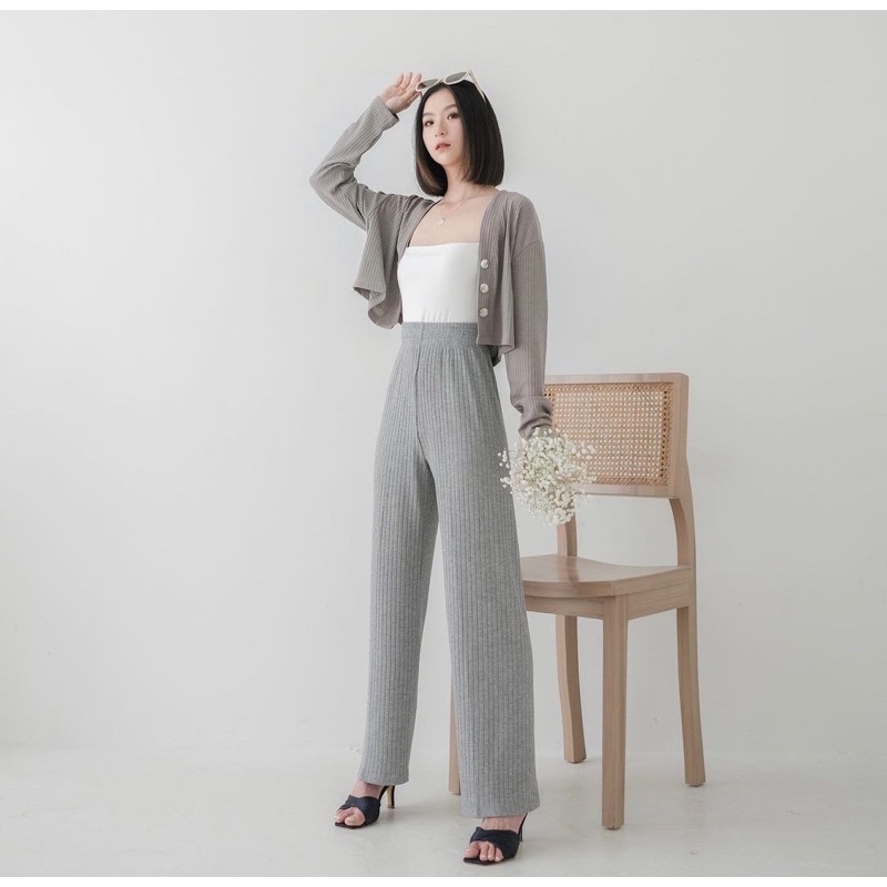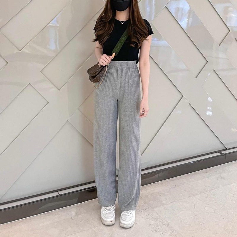 KYLIE KNIT PANTS (CELANA KULOT WANITA) / HIGHWAIST / WIDE LEG PANTS / LONG KNIT PANTS