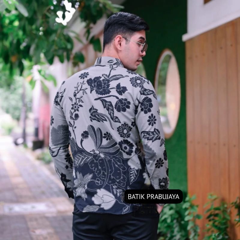 BUNGA ABU Kemeja Batik Pria Modern Lengan Panjang Full Furing Katun Halus Solo - Baju Batik Pria Seragam Kerja Kantor