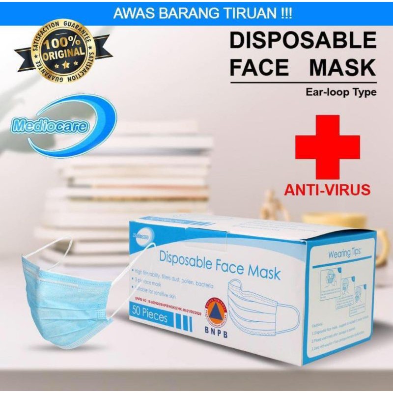 [Earlop biru isi 50pc] masker earlop 3ply Biru / Masker Disposable Face Mask 3 Ply / Masker Earloop