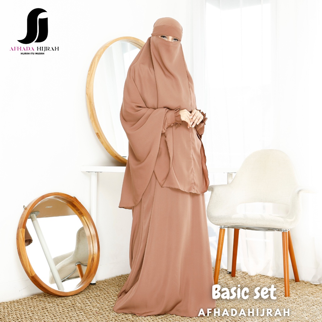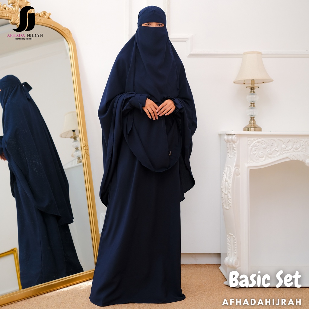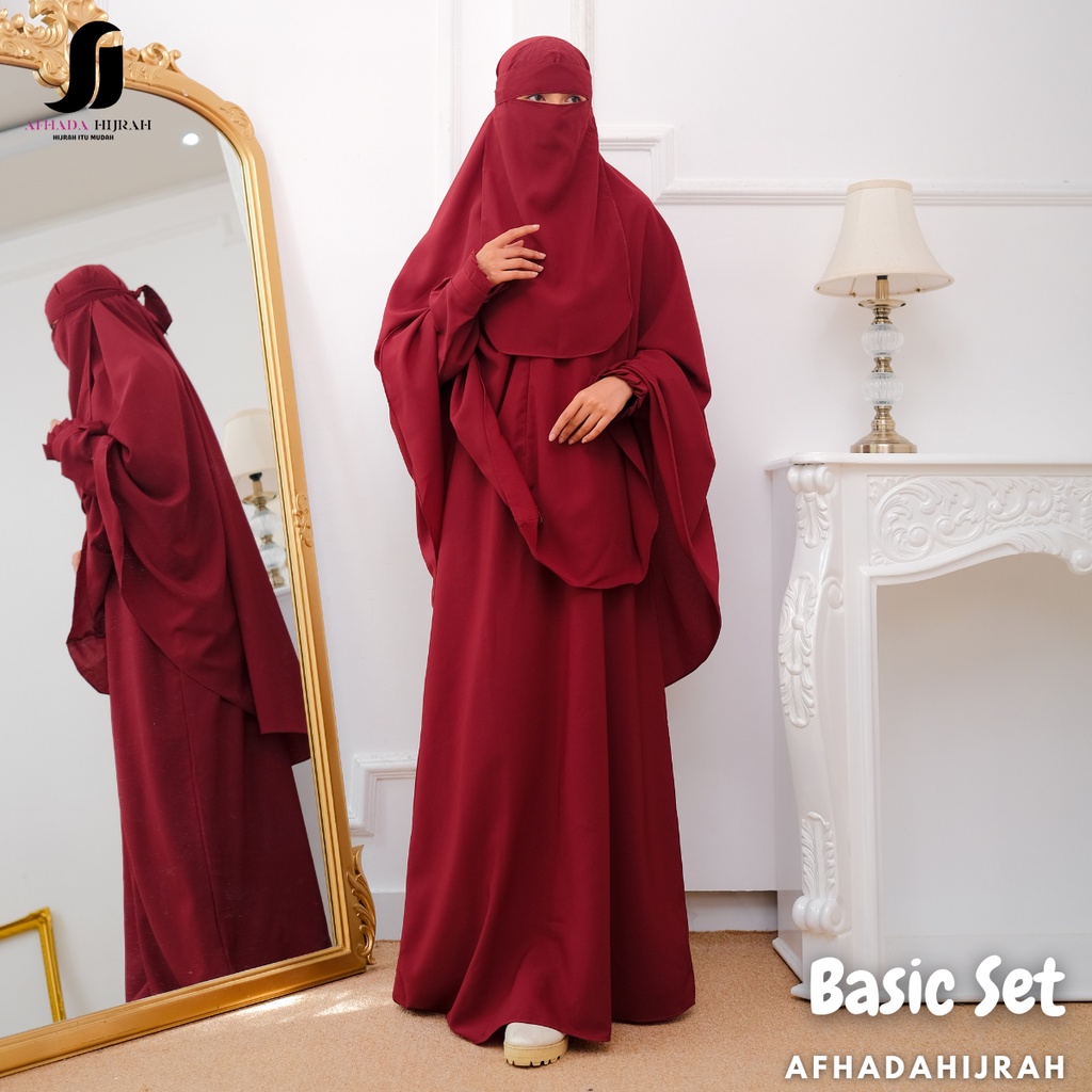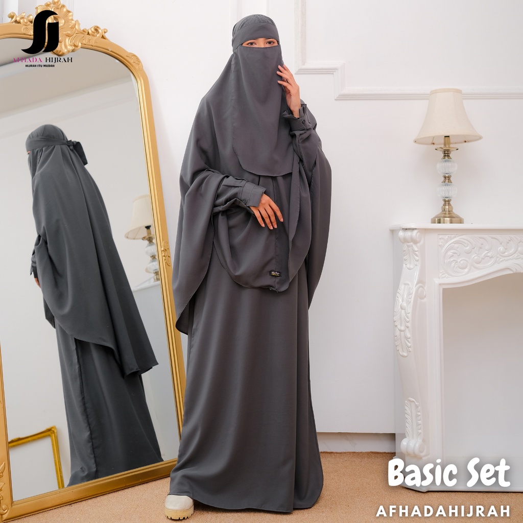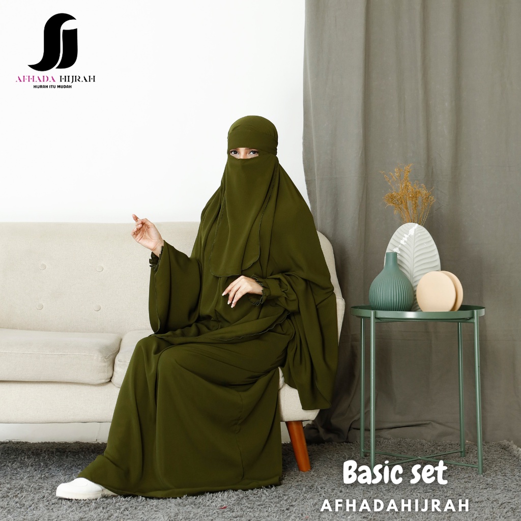 Gamis syari jilbab cadar Basic hitam wolvis baju set hijab instan free niqab terbaru