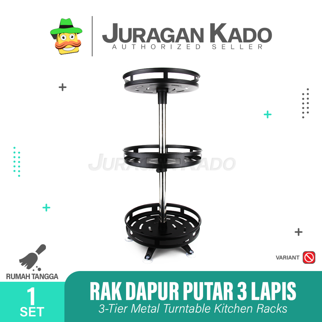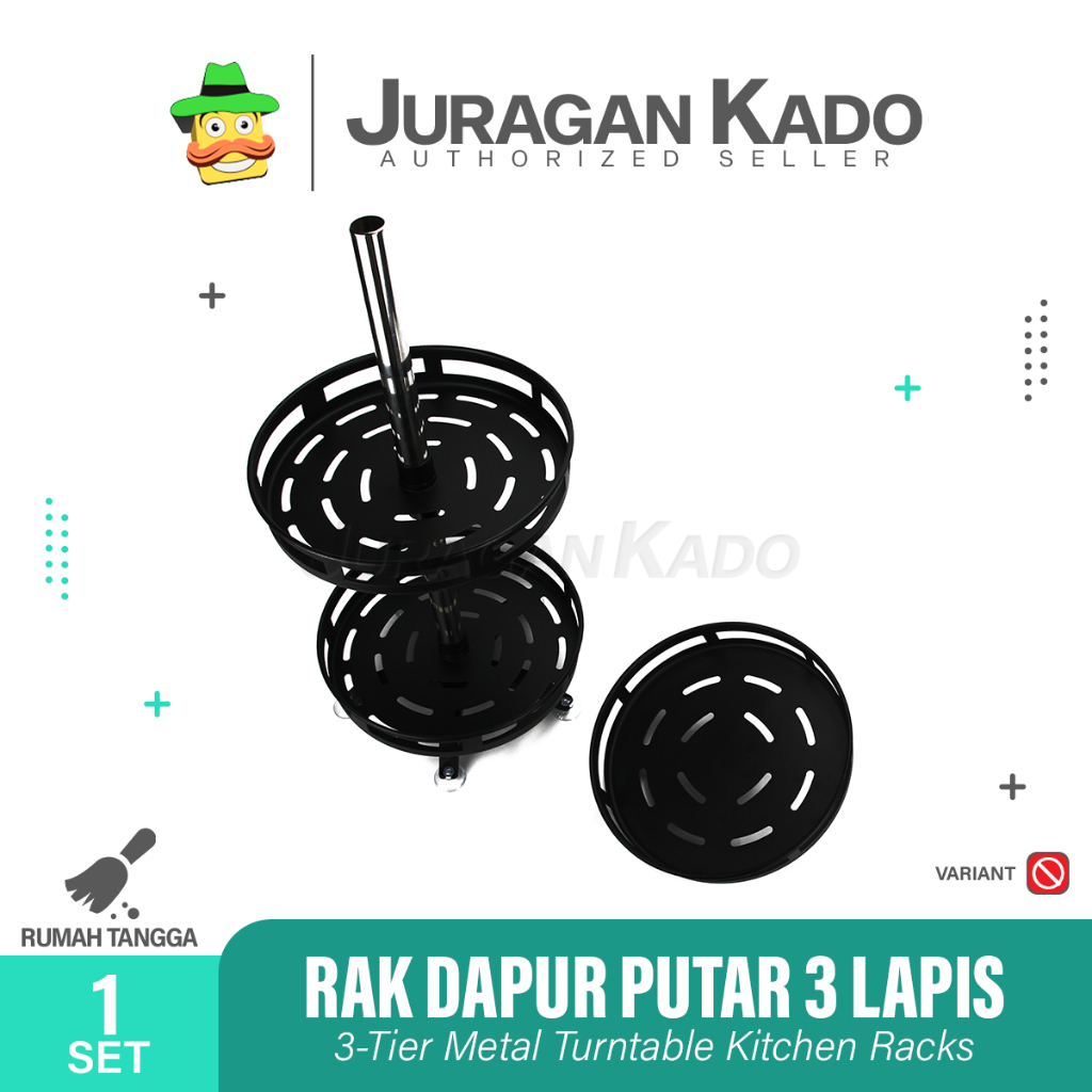 Rak Bumbu Dapur 3 Susun Rak Putar Steinless Bumbu Dapur Serbaguna Berputar 360 Derajat