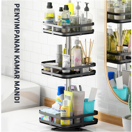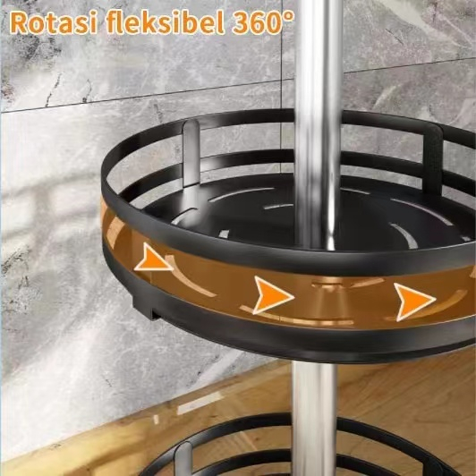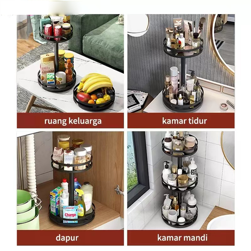 Rak Bumbu Putar Berputar 360 Derajat Rak Bumbu Dapur Stainless Rotate Kitchen Spice Rack Organizer 1/2/3 lapisan Rak km