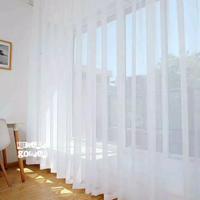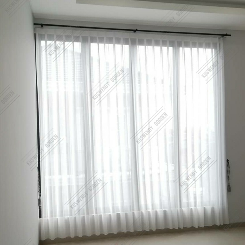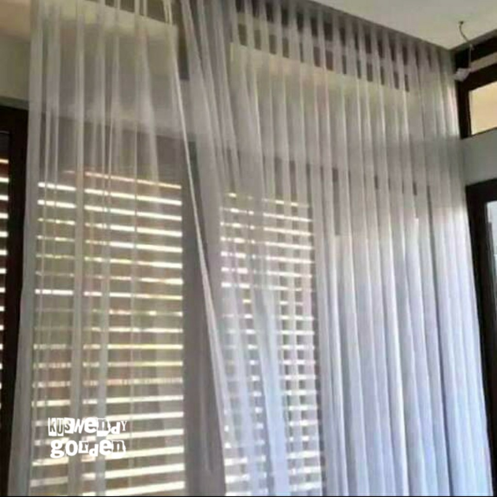 Gorden Vitrase Polos 200 x 250 cm Tinggi 3 meter Hordeng Putih Plisket Jendela Pintu Tirai Minimalis