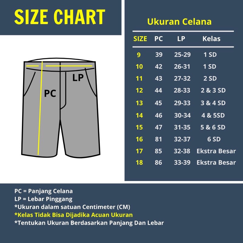 KELAS 5 : (Baju size 14/15), (Celana size 16/17)