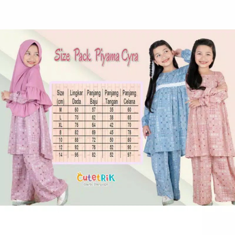Baju tidur piyama anak cutetrik bahan katun rayon adem dan lembut usia 3th-14th