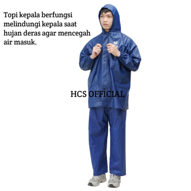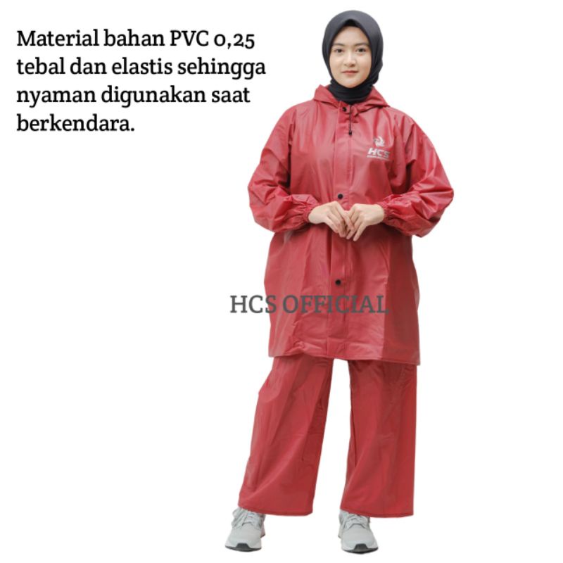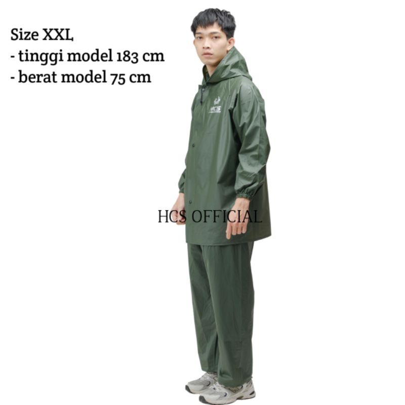 Jas hujan HCS ,jas hujan berkualitas. Bahan parasit PVC dengan ketebalan 0,25, elastis dan awet (setara axio)