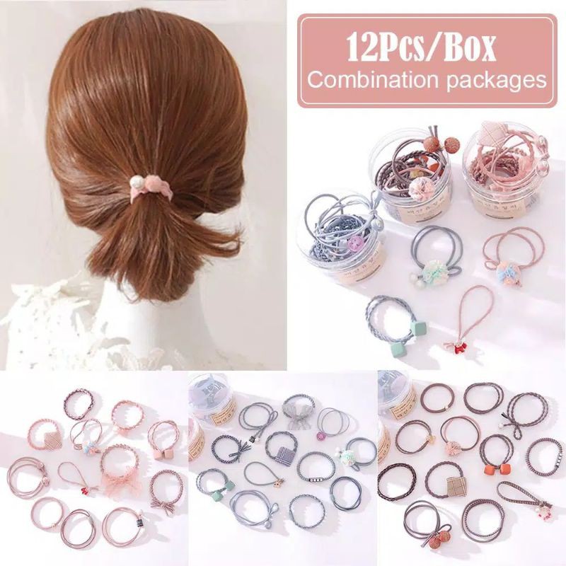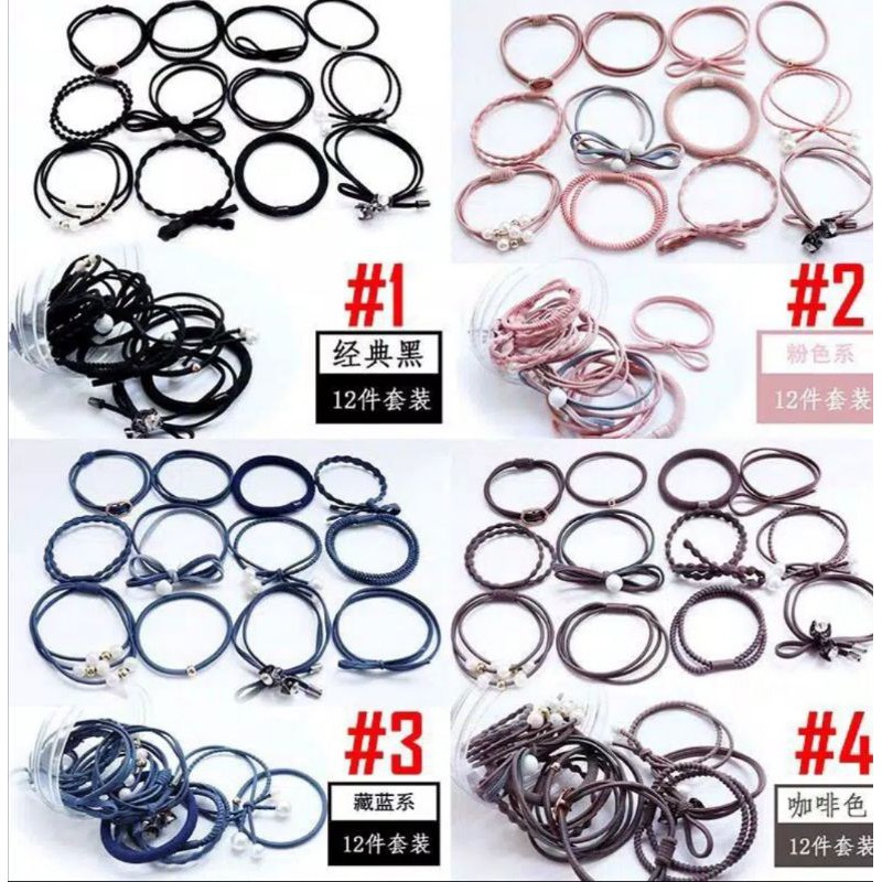 12pcs !! Ikat Rambut Simple Gaya Korea untuk Wanita