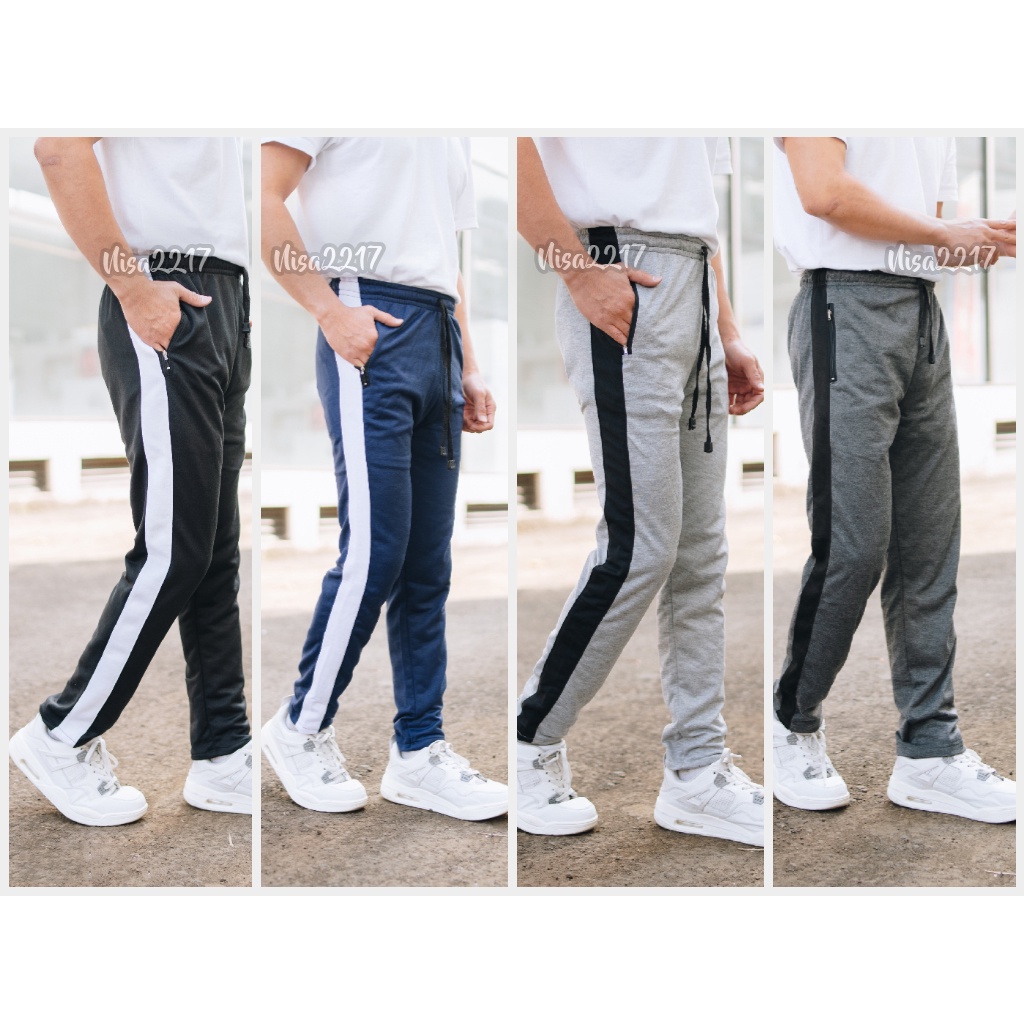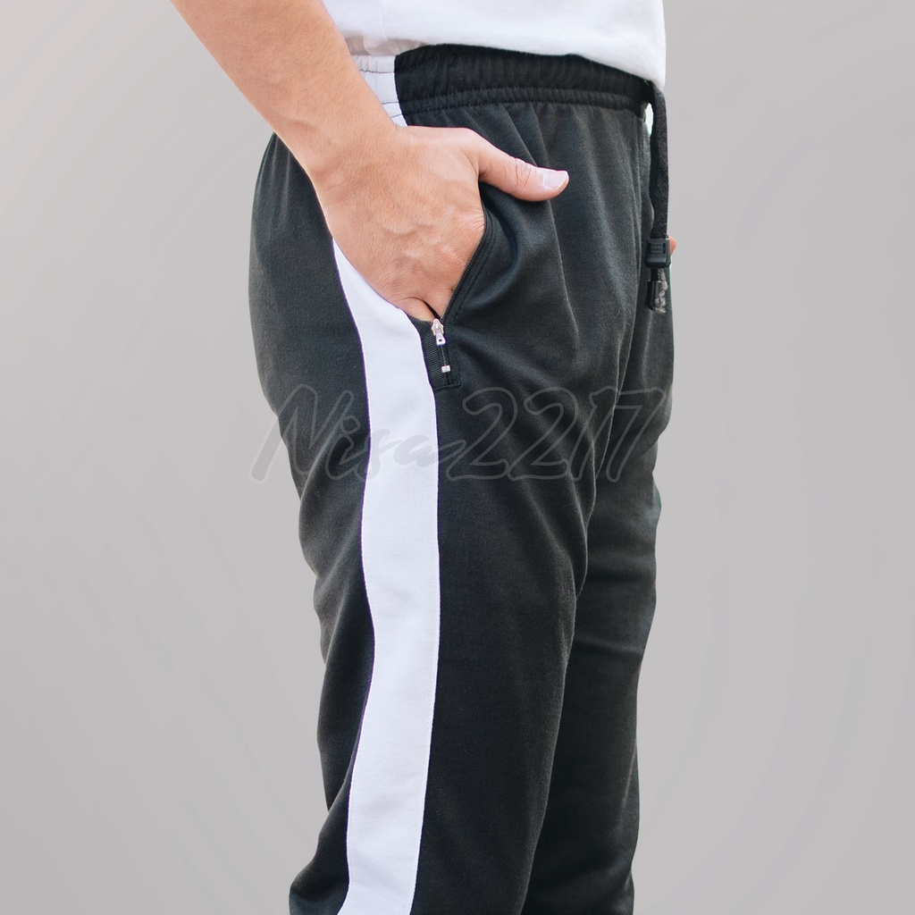 CELANA TRAINING PRIA AD 918 HITAM LIST MERAH - OLAHRAGA COWOK GYM PREMIUM PANJANG SLIMFIT