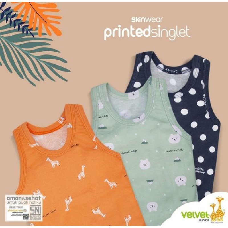 VELVET JUNIOR 3pcs Kaos Dalam Anak/ Kaos Kutang Bayi / Singlet MOTIF Printed Singlet Velvet