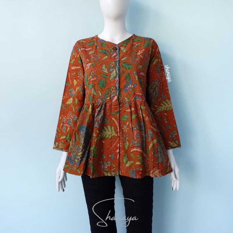 Shanaya Batik Blouse Semi Peplum 3 Negeri Blus batik kerja Cantik Modis Elegan