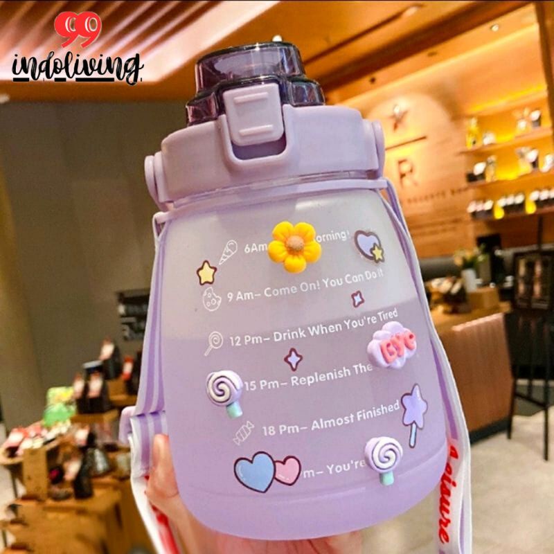 Botol Minum 1,1 Liter Tutup Flip Dengan Sedotan Tempat Minum Air Penanda Waktu