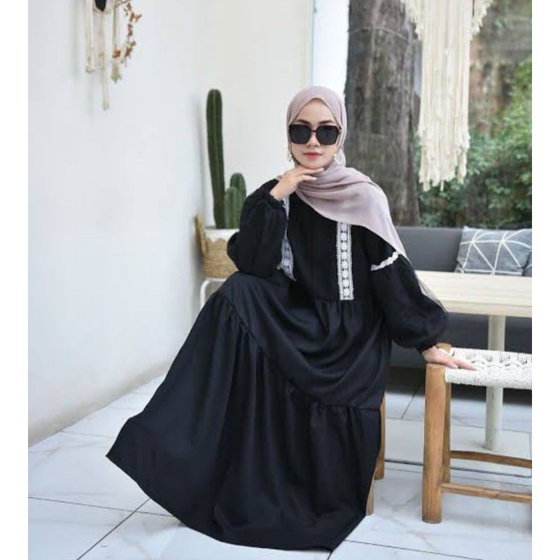Gamis Muslim Hayla Dress [S M L XL XXL] Maxi Wanita Polos Terbaru Murah Busui Hitam Modern Kebaya