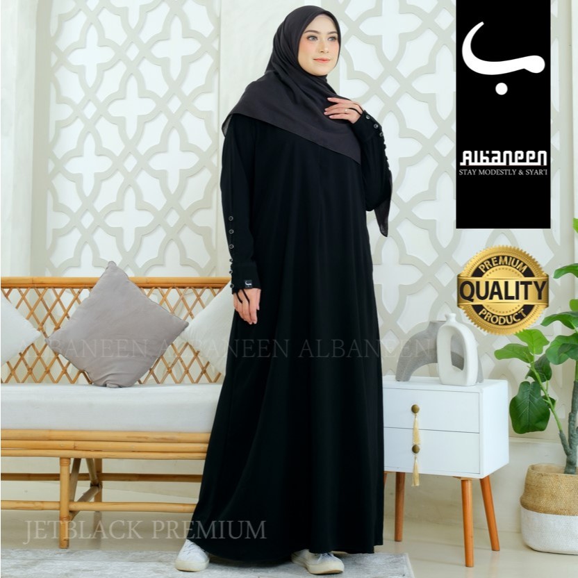 1. Mola Albaneen.syari gamis hitam abaya jet black terbaru 2025 | Gamis hitam pekat a