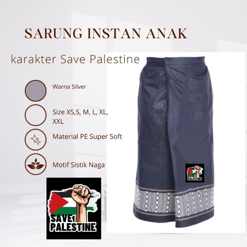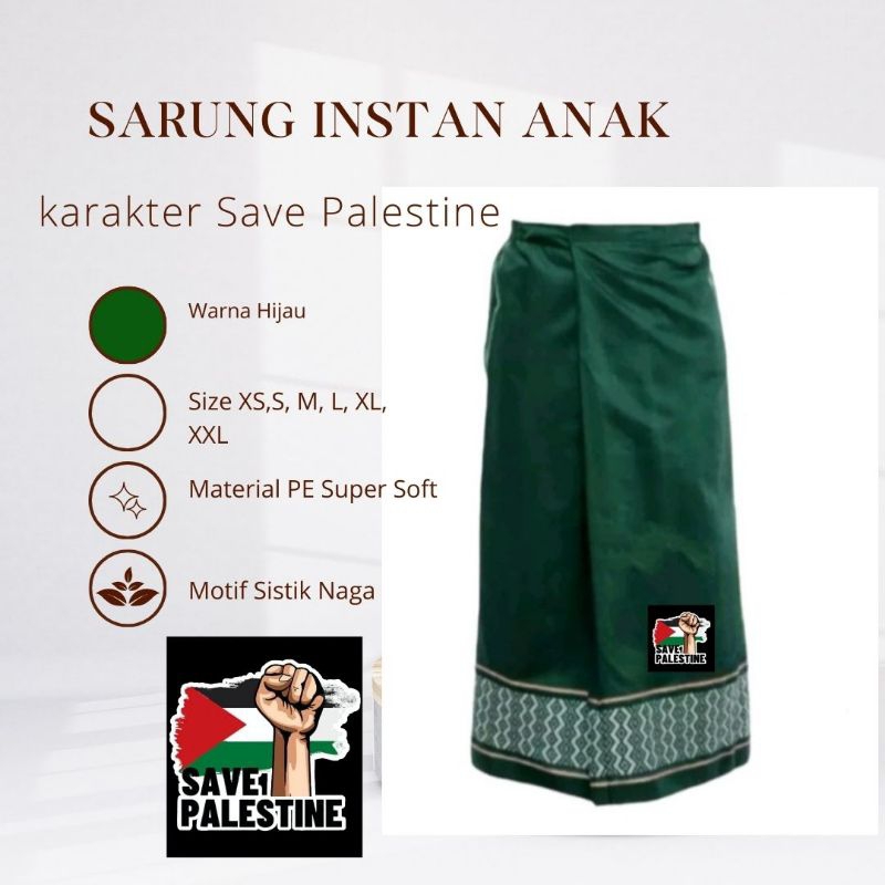 Sarung Instan Anak Karakter Save Palestine/Sarung Murah/ Sarung Kekinian / Sarung Anak Model Rok