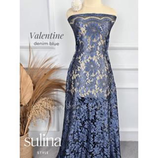 Sulina Style - Kain Kebaya Brokat Semi Prancis Black Lace Laminating Metallic Cord Valentine